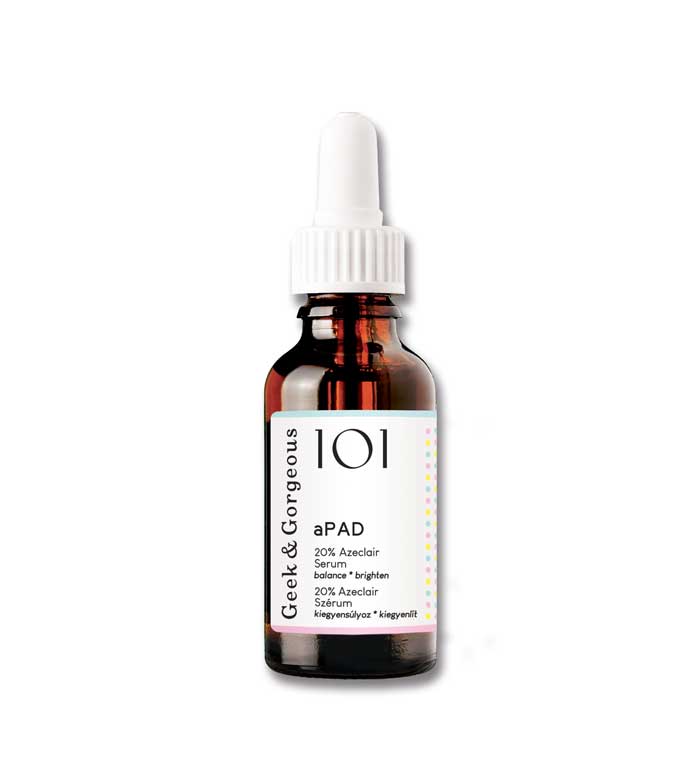 Sérum 20% ácido azelaico aPAD de Geek & Gorgeous de fórmula súper ligera como el agua.