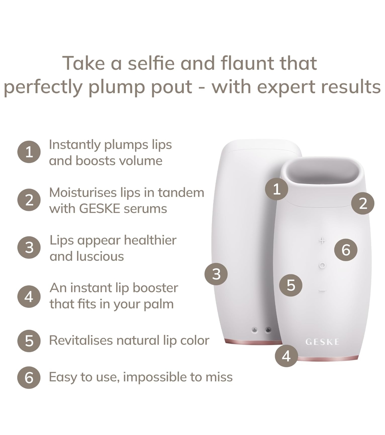 El aparato Lip Volumizer & Booster de Geske es un dispositivo de belleza de última generación diseñado para mantener los labios más carnosos, definidos y con un aspecto joven día tras día.
