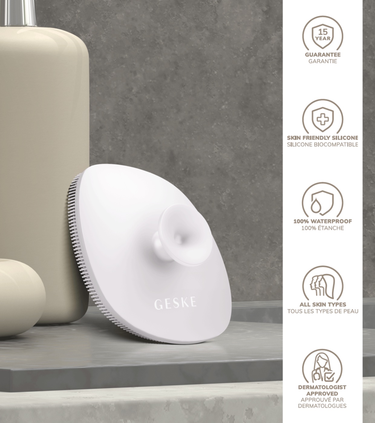SmartAppGuided™ Facial Brush de GESKE ofrece una limpieza profunda ultra higiénica, ideal para tu rutina diaria de cuidado de la piel.