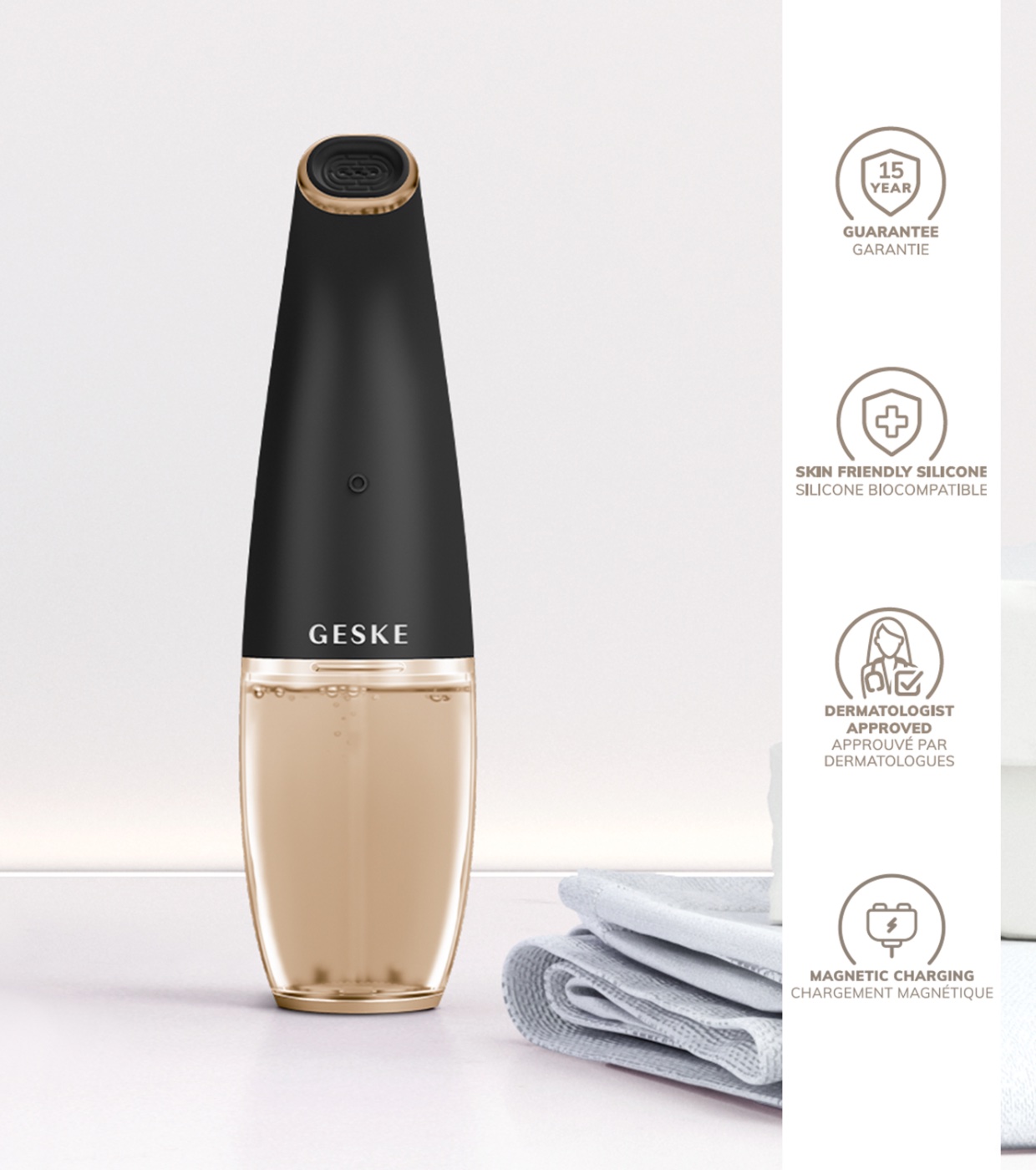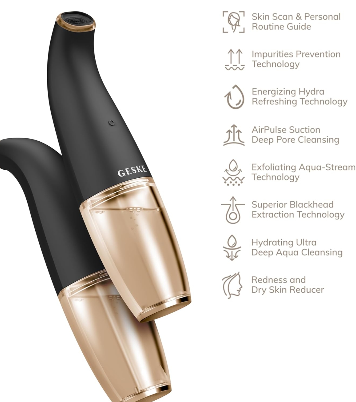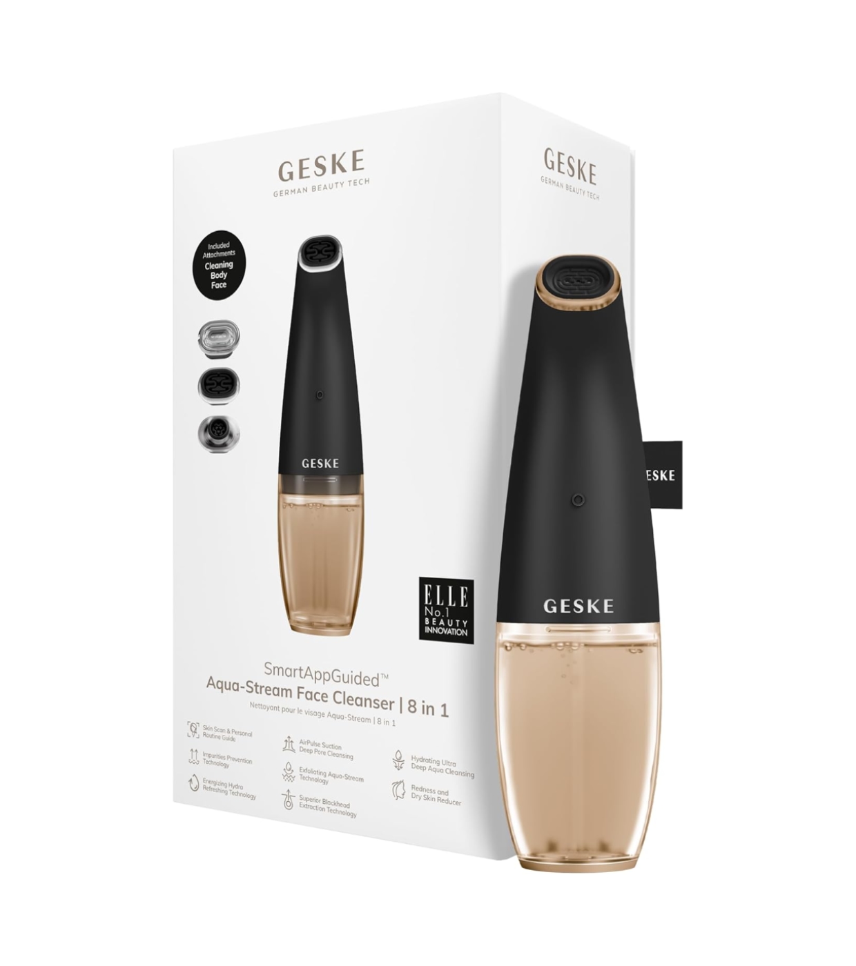 Renueva tu piel con una combinación de tecnologías avanzadas que actúan en sinergia para ofrecer limpieza, hidratación y frescura en cada sesión con este limpiador Aqua-Stream Face Cleanser 8 in 1 de GESKE.