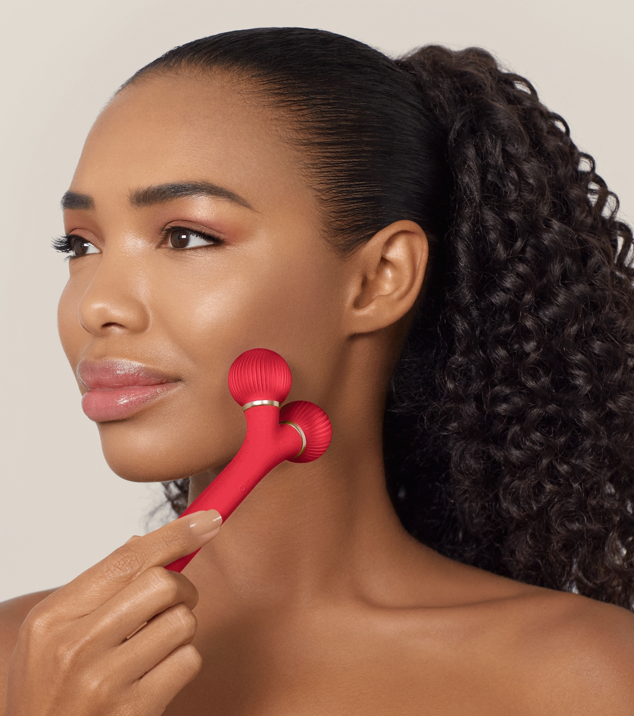 Este rodillo facial sónico está diseñado para tensar y refinar visiblemente la piel y los contornos faciales.