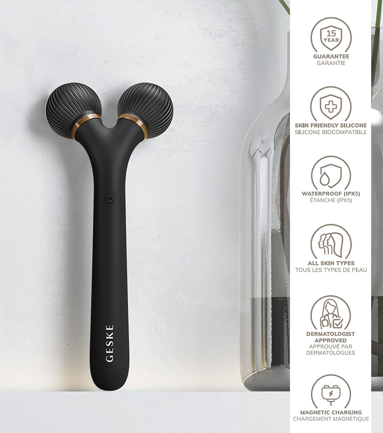 Este rodillo facial sónico está diseñado para tensar y refinar visiblemente la piel y los contornos faciales.