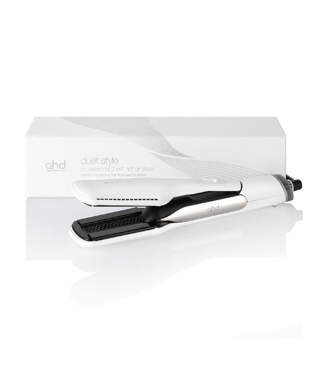 Consigue lo imposible con Duet Style professional 2-in-1 hot air styler de ghd, la innovadora plancha de pelo de aire caliente 2 en 1 que te permite secar y alisar el cabello simultáneamente sin dañarlo.