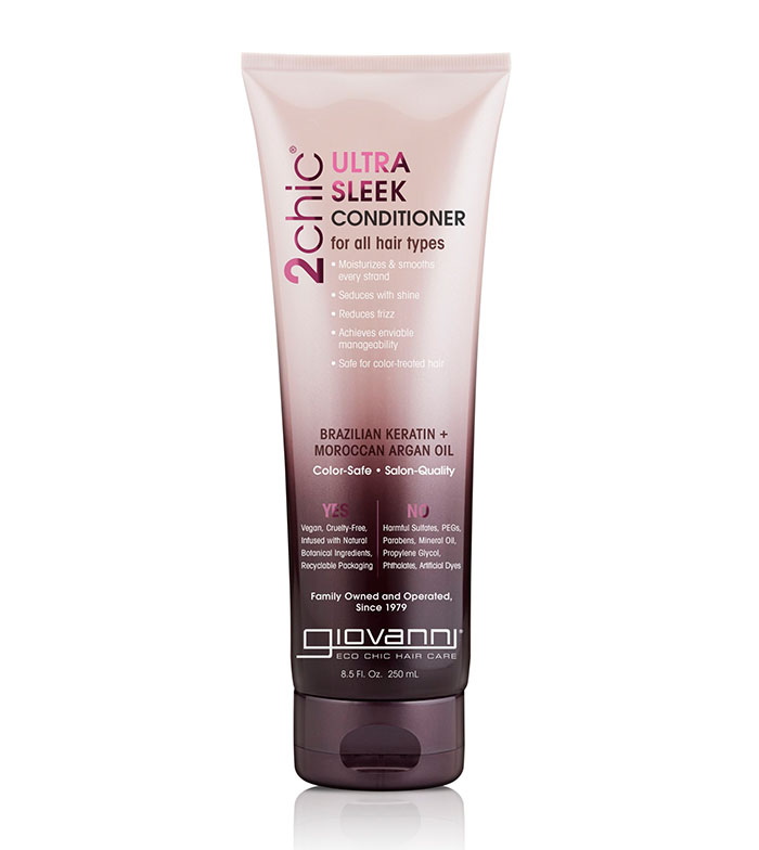 El acondicionador 2Chic con Queratina Brasileña y Aceite de Argan de Giovanni es el aliado perfecto para cabello seco, encrespado o dañado por tratamientos químicos y calor.
