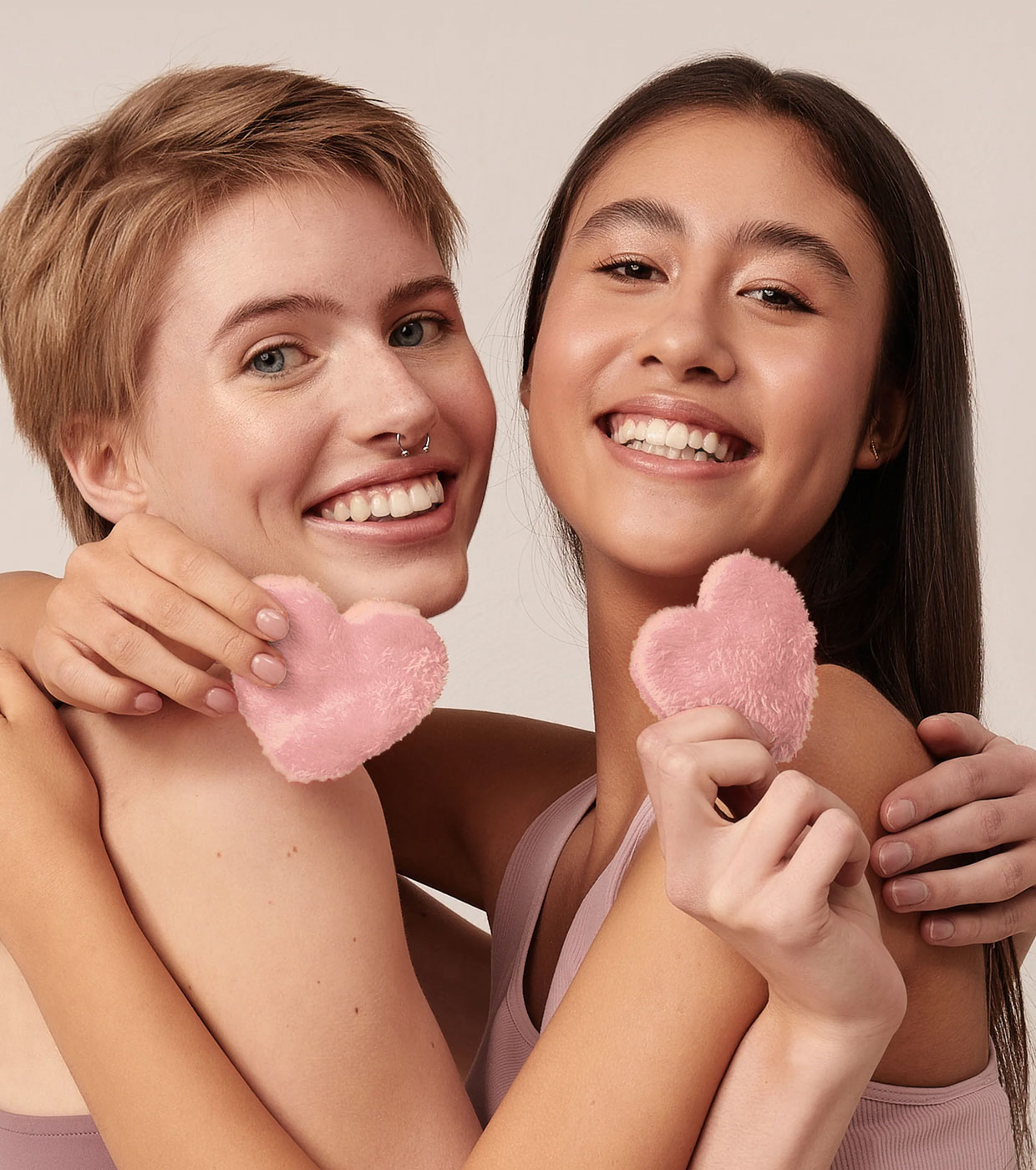 Pero eso no es todo. Este set también incluye tres almohadillas cosméticas ultrasuaves con forma de corazón. Estas almohadillas, patentadas y reutilizables, te permiten llegar fácilmente a todos los rincones y pliegues de tu rostro. Úsalas solo con agua o con tus productos de limpieza favoritos para disfrutar de una piel más clara y radiante con GLOV®.