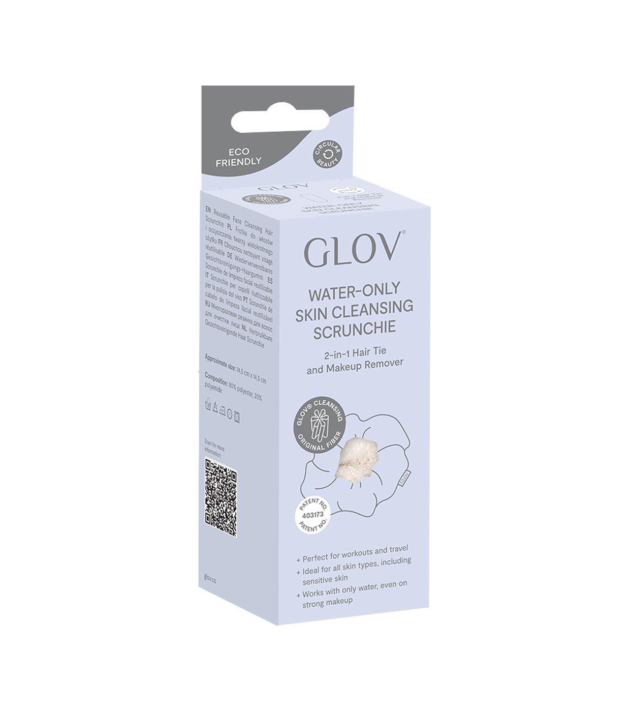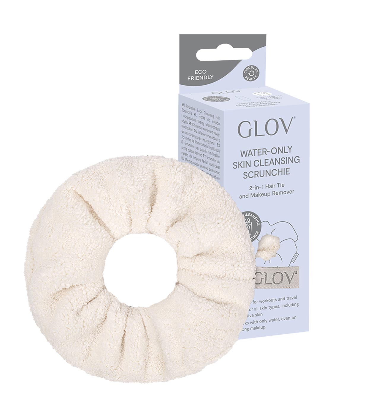 GLOV® Deep Pore Cleansing Skincare Scrunchie sujeta tu cabello y es el desmaquillante o refrescante de piel más práctico y patentado, ¡usando sólo agua!