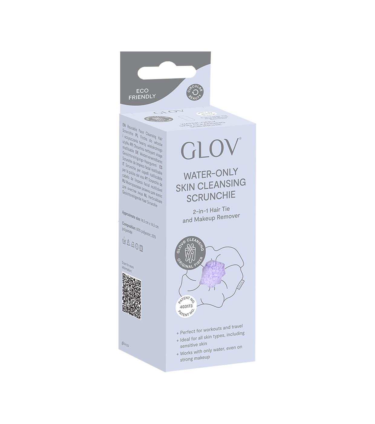 GLOV® Deep Pore Cleansing Skincare Scrunchie sujeta tu cabello y es el desmaquillante o refrescante de piel más práctico y patentado, ¡usando sólo agua!