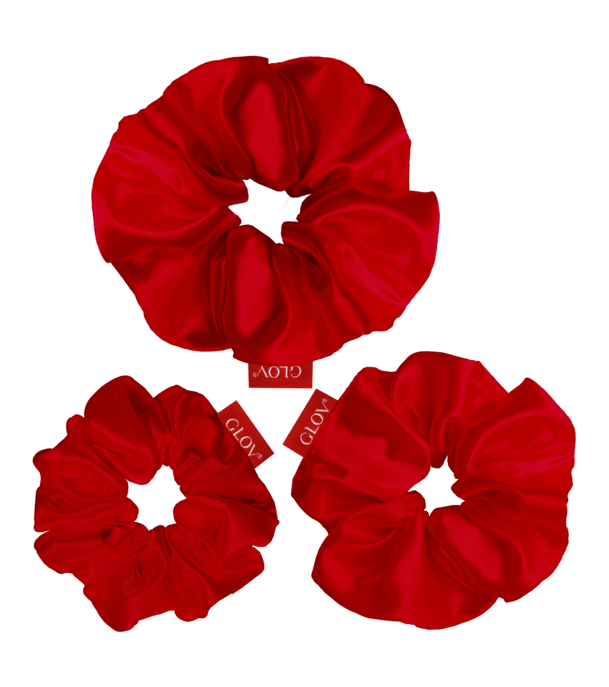GLOV - Pack de 3 coleteros Satin Scrunchies tallas S/M/L - Rojo