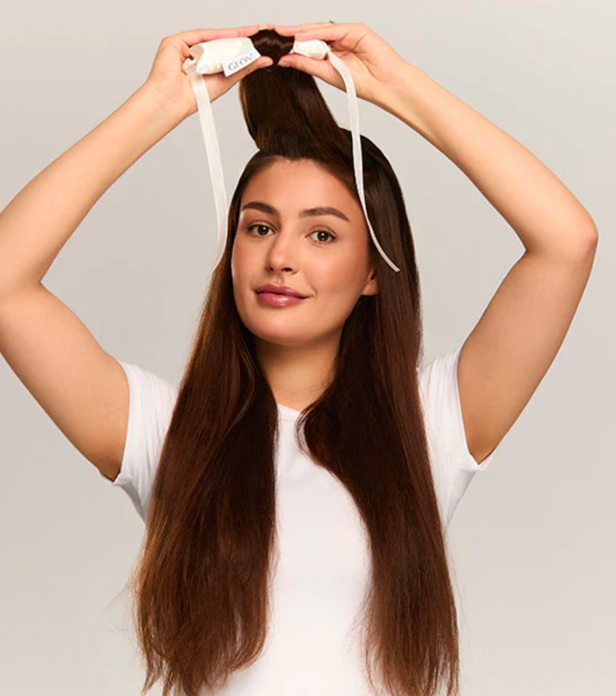 Basta con dividir el cabello, enrollarlo alrededor de los rulos y sujetarlo con las encantadoras cintas.