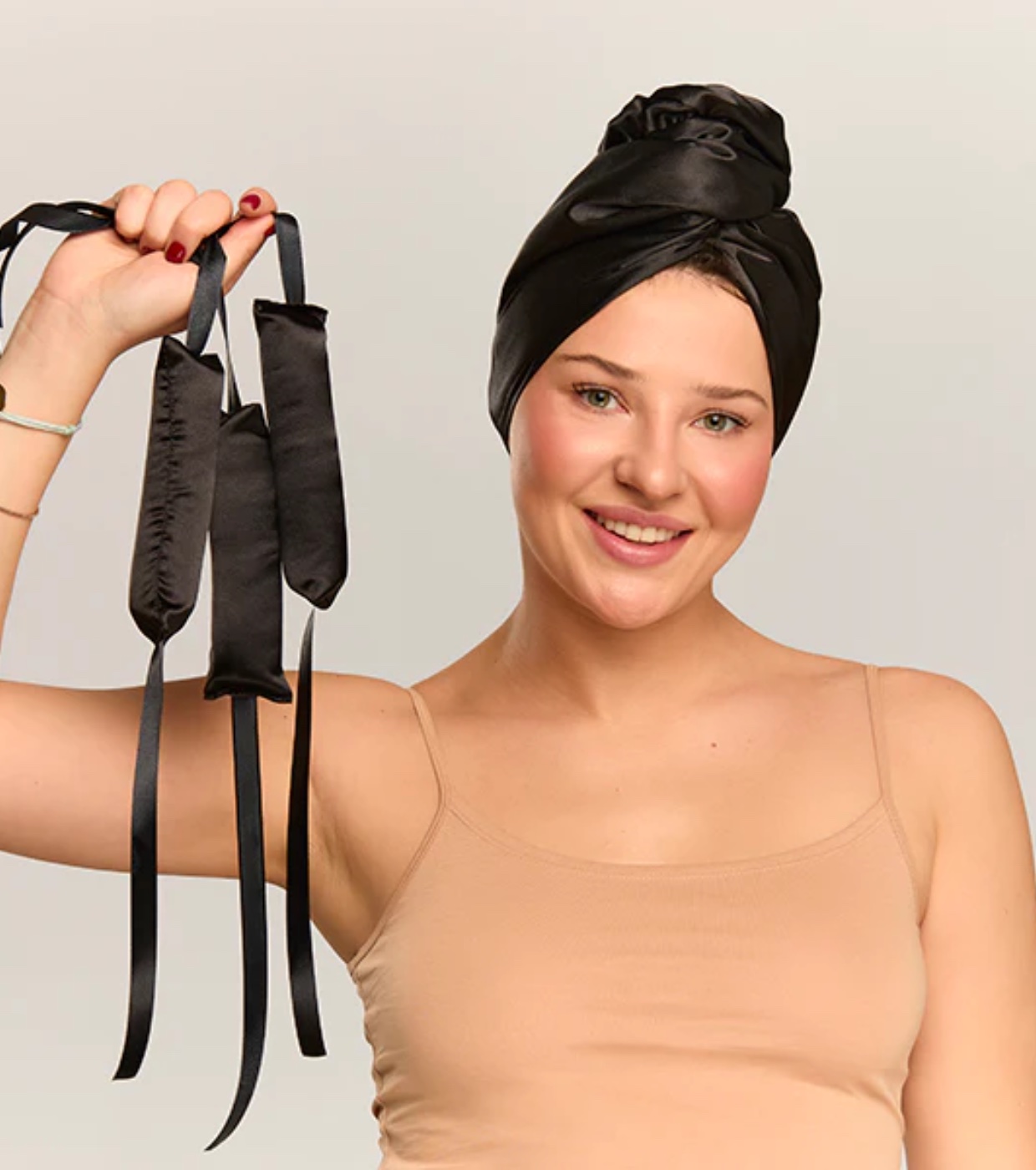Estos innovadores rulos están fabricados con un lujoso tejido satinado y cuentan con dos adorables cintas para atar y sujetar el cabello.