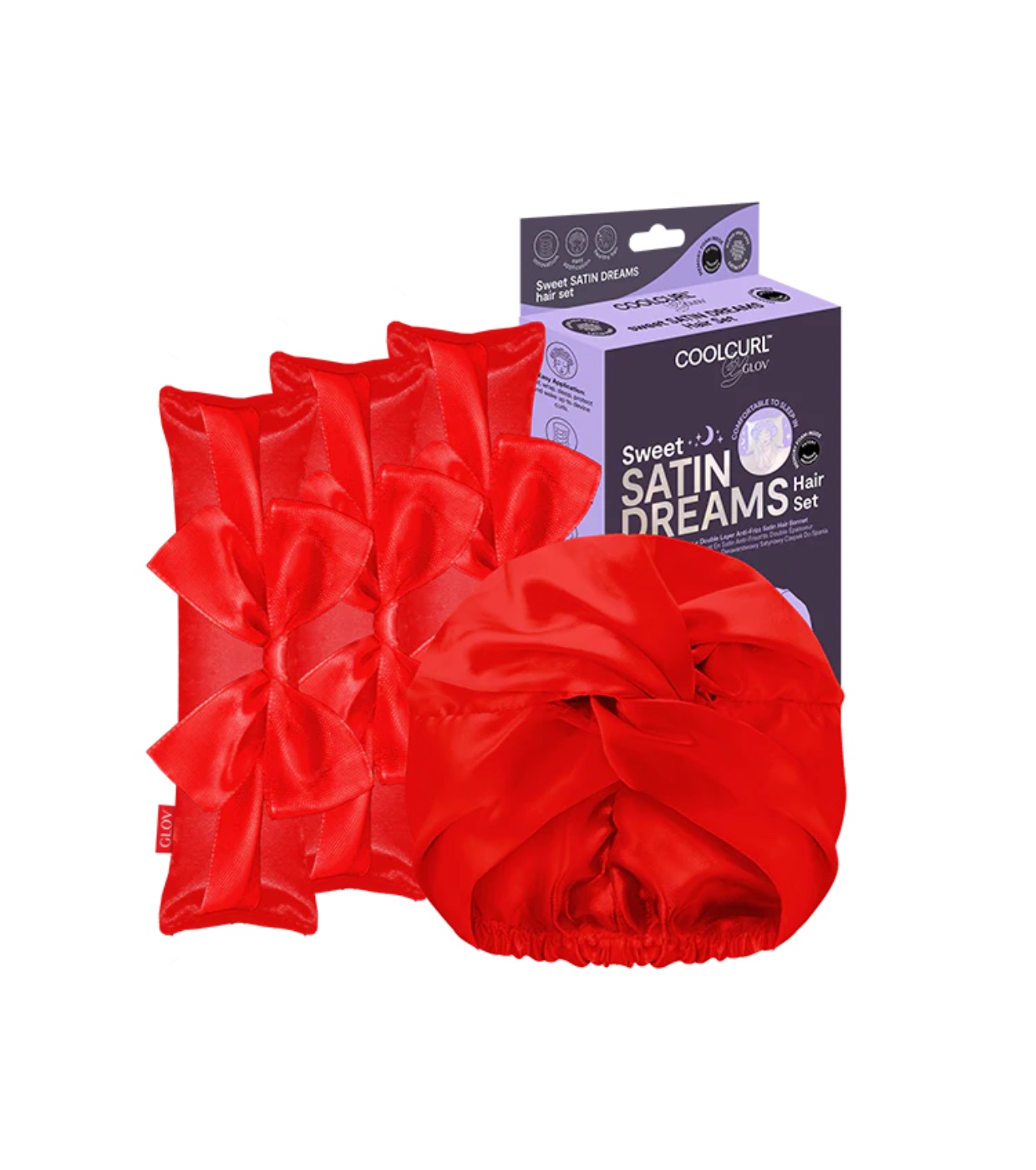 Descubre el set para el pelo Sweet Satin Dreams, una lujosa combinación de rulos de cinta y el gorro de satén antiencrespamiento de doble capa GLOV para conseguir unos rizos sublimes sin calor y unas mañanas sin encrespamiento.