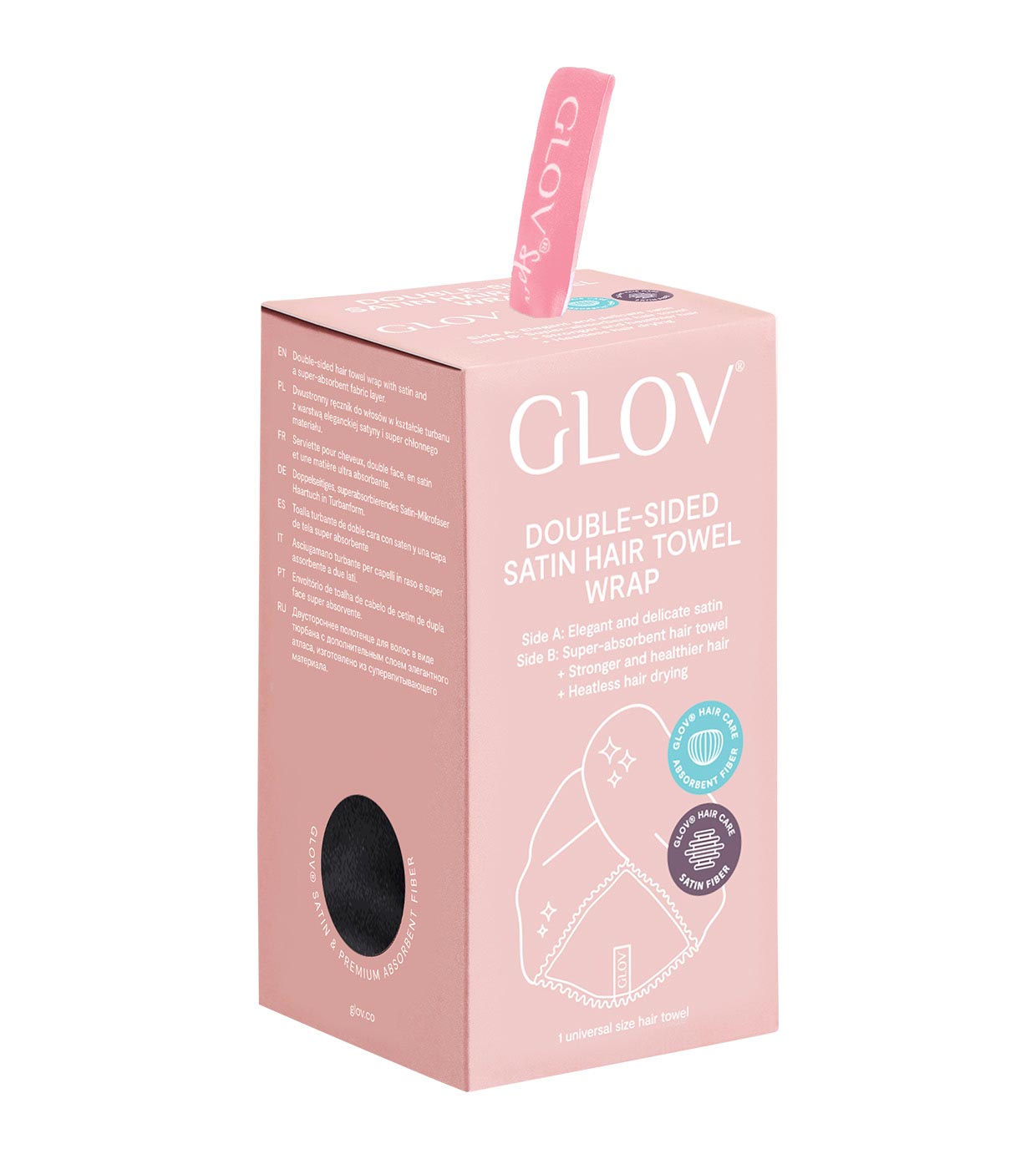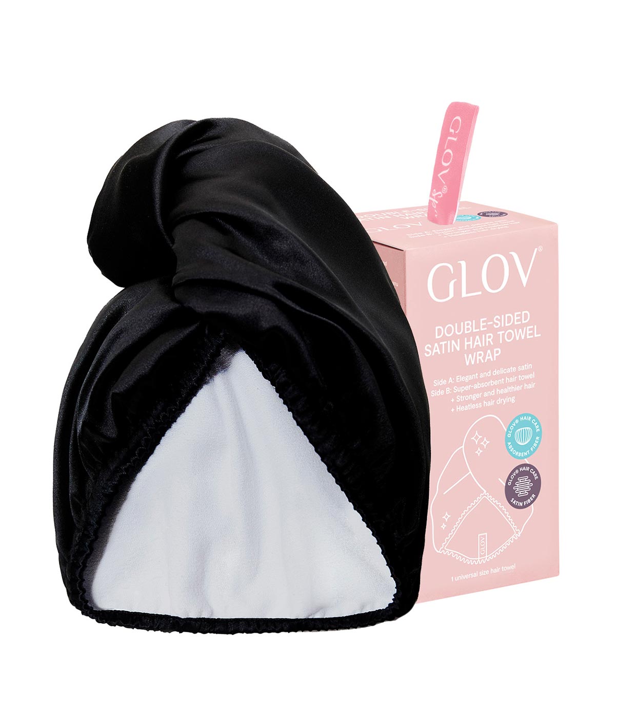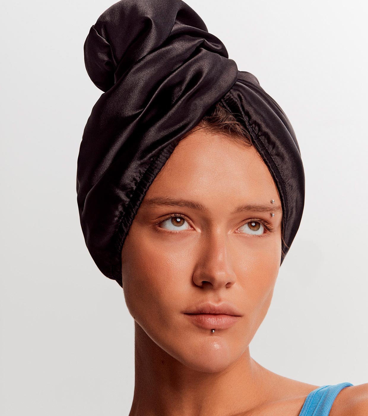 Este turbante es de doble cara: por un lado saten y por el otro tela absorbente.