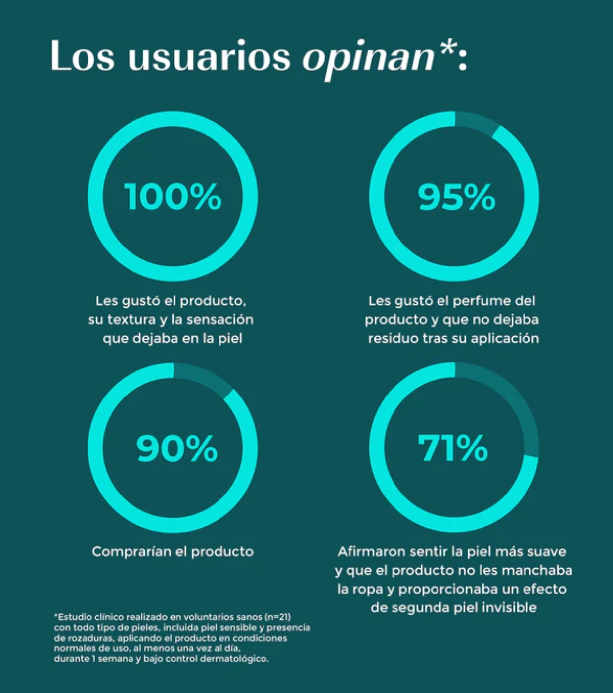 - Uso diario, ideal para zonas sensibles a la fricción como muslos, axilas, pies o cualquier parte del cuerpo propensa a rozaduras.