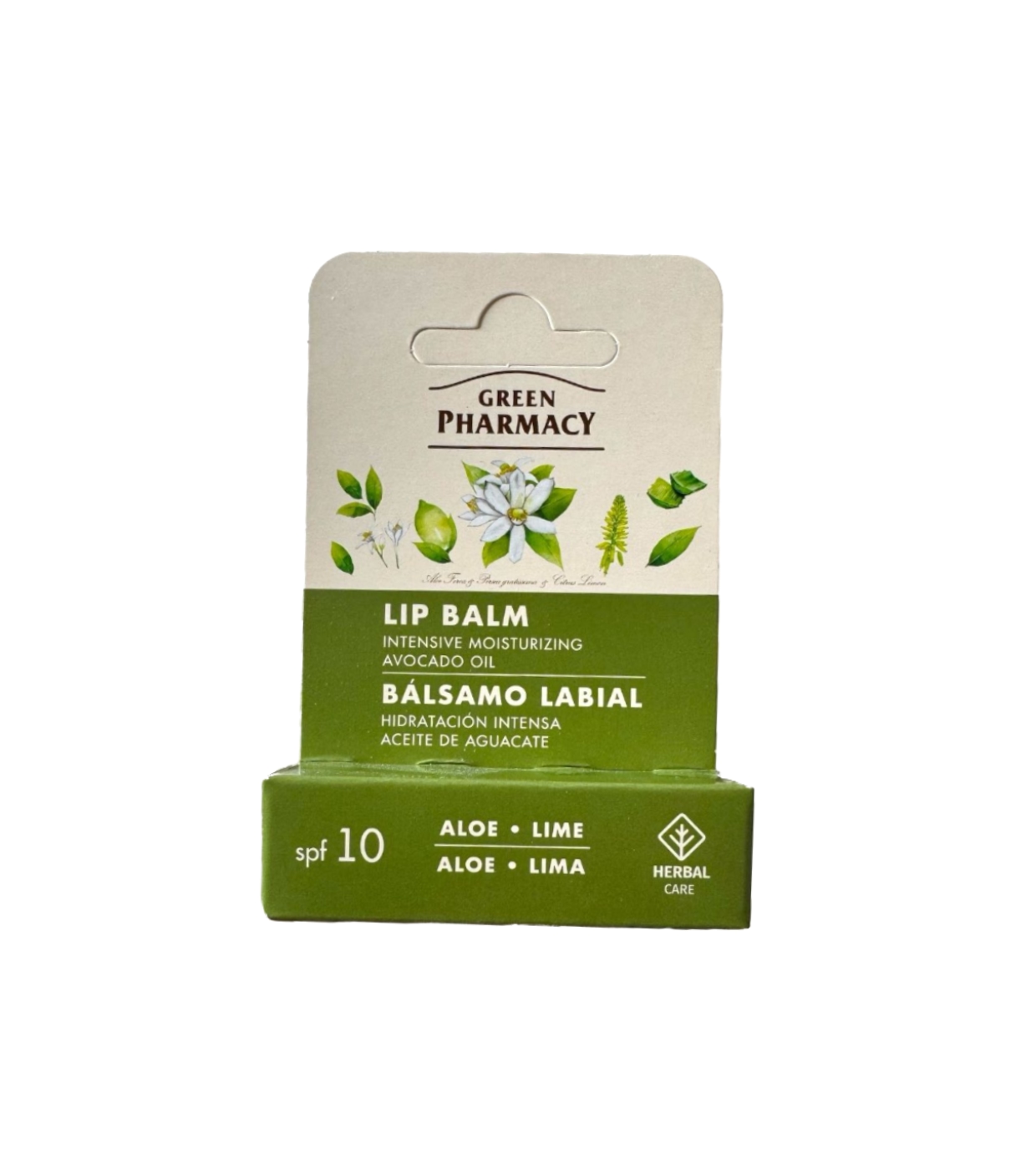Bálsamo labial SPF 10 con aloe y lima de Green Pharmacy.