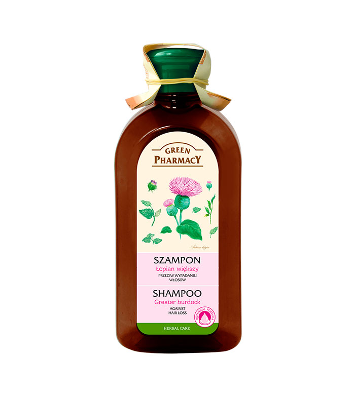 Champú anticaída con extractos de bardana y proteína de trigo de Green Pharmacy.