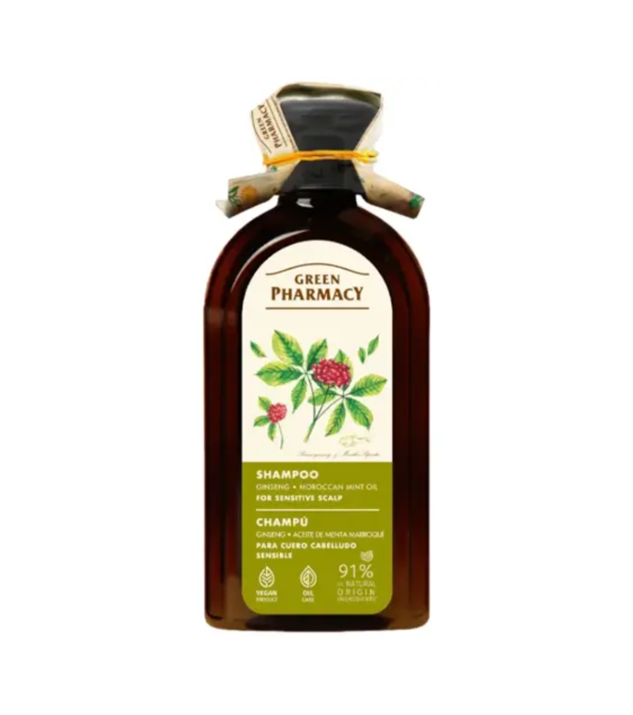 Champú con Ginseng y aceite de menta marroquí de Green Pharmacy.