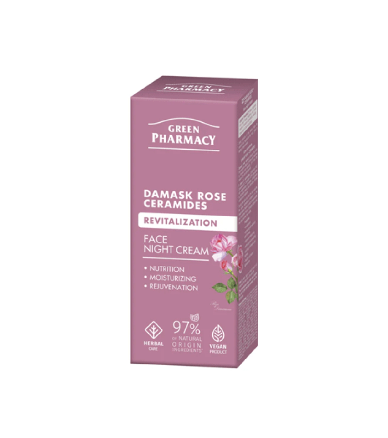 Inspirado en la tradición herbal y la innovación cosmética, esta crema facial revitalizante de noche con Rosa damascena y Ceramidas de Green Pharmacy está creada para fortalecer, nutrir y devolver la elasticidad a la piel.
