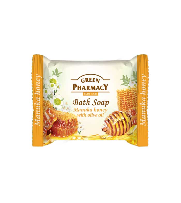 Jabón de baño en pastilla de miel de manuka y aceite de oliva de Green Pharmacy.