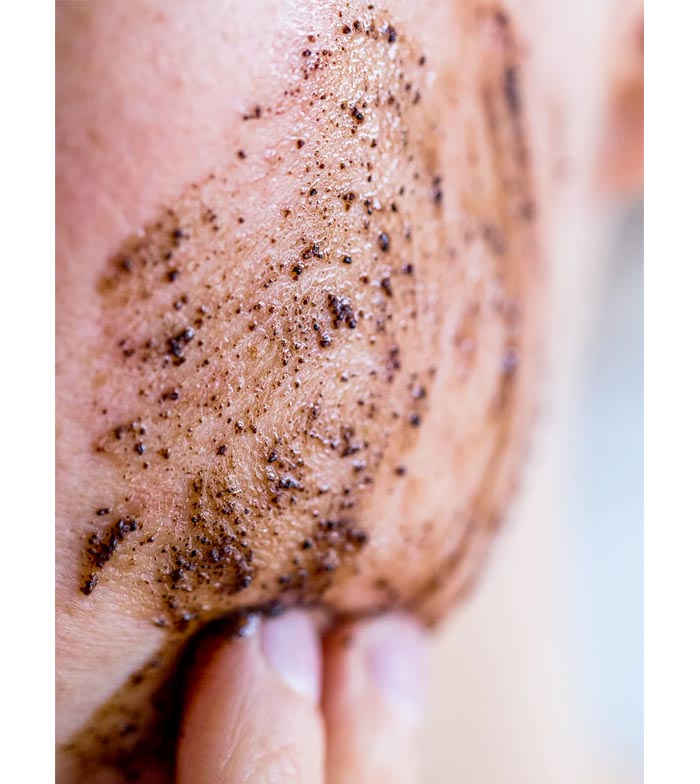 Nutre y protege la piel gracias a su contenido de aceite de manteca de karité, glicerina, aceite de ricino, cera de abejas, manteca de semillas de cacao, aceite de nuez de macadamia, cera de bayas, escualano, vitamina E y, por supuesto, posos de café.