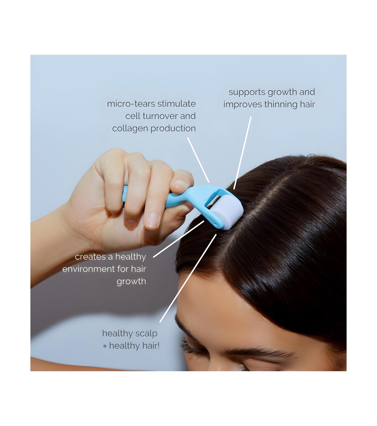Diversos estudios han demostrado que la aplicación repetida de microagujas en el cuero cabelludo favorece el colágeno y el crecimiento del cabello, a la vez que ayuda a una aplicación más profunda de los tratamientos tópicos.
