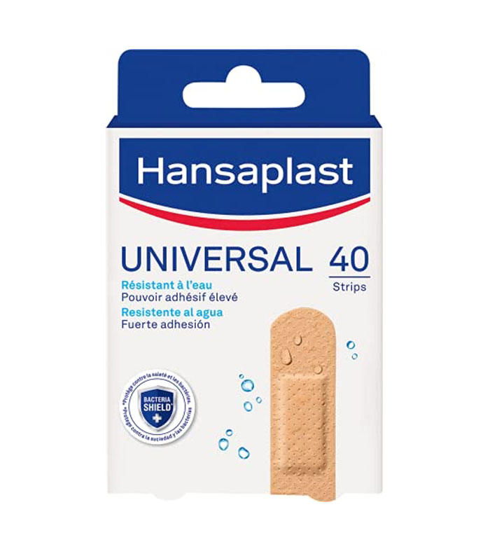 Los apósitos Universal de Hansaplast son resistentes al agua, para cubrir y proteger heridas menores.