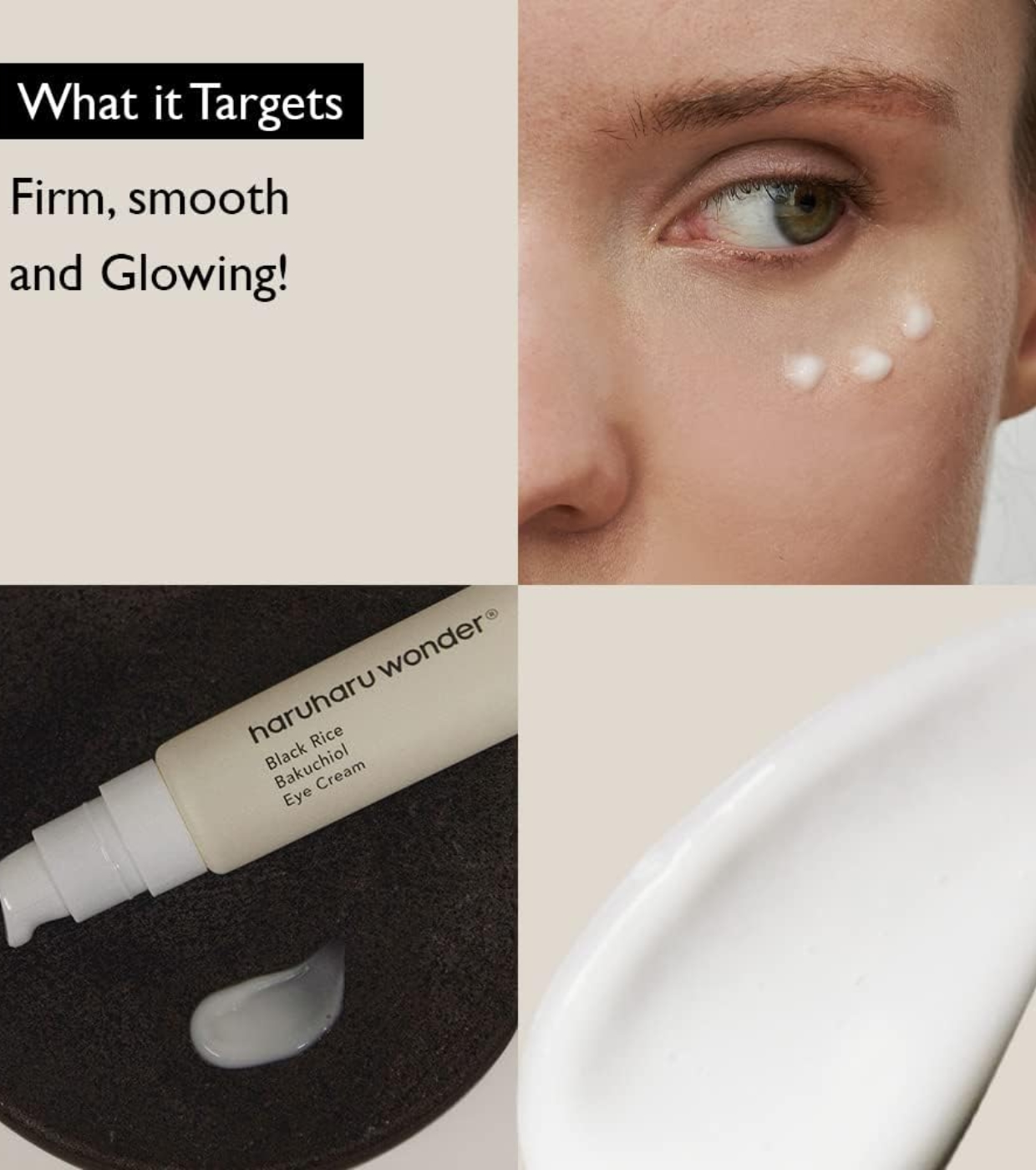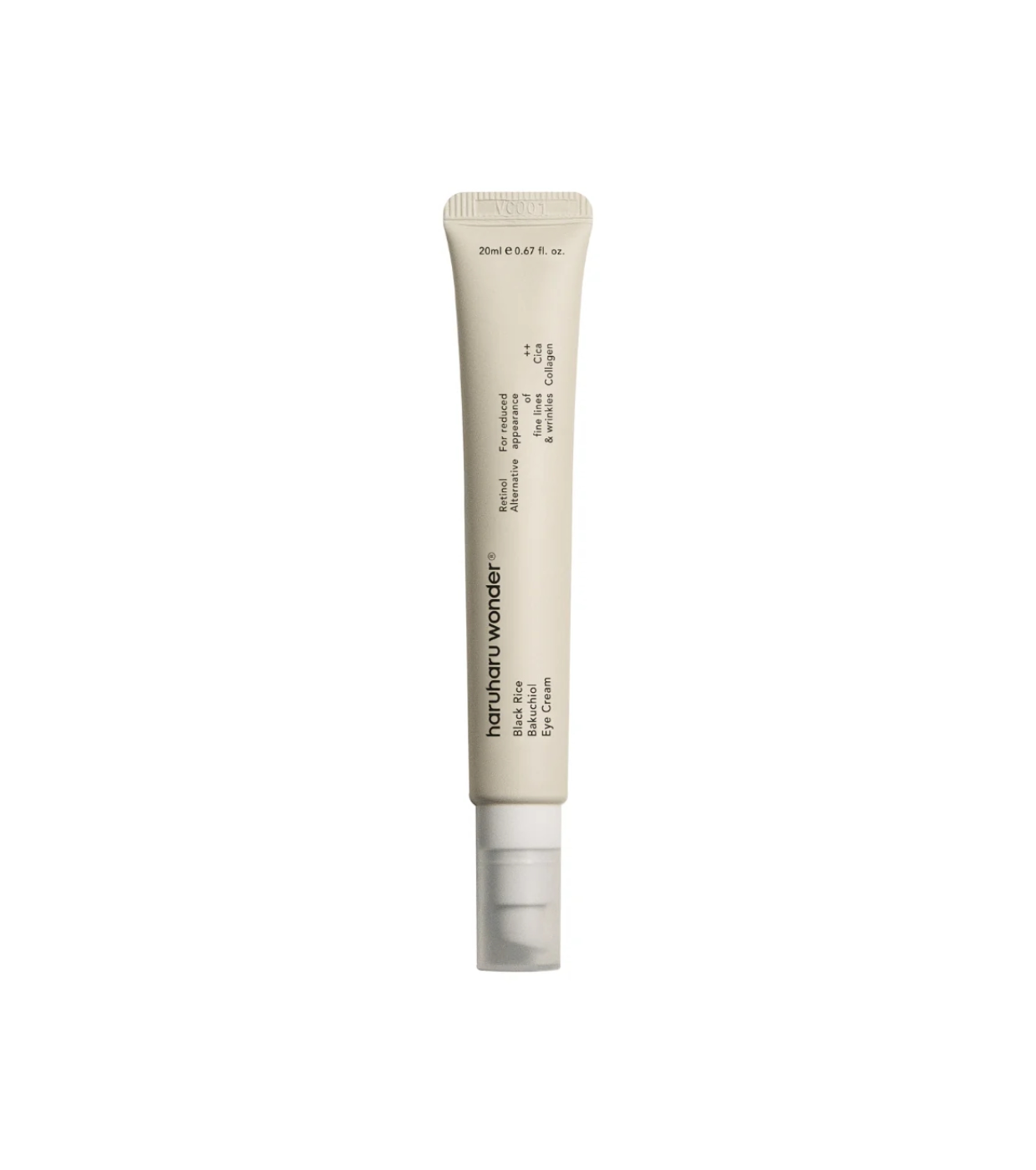 Mejora la apariencia de arrugas y líneas de expresión con esta potente crema para el contorno de ojos Black Rice Bakuchiol de Haruharu Wonder, formulada con 5000 ppm de bakuchiol, una alternativa vegetal al retinol, y 2000 ppm de extracto de arroz negro coreano, conocido por sus propiedades hidratantes y antioxidantes.