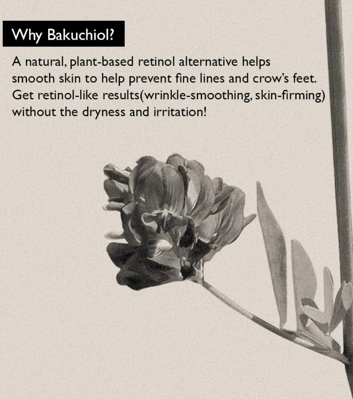 - Bakuchiol: Reafirma, mejora la elasticidad y reduce visiblemente las arrugas sin irritar la piel sensible.