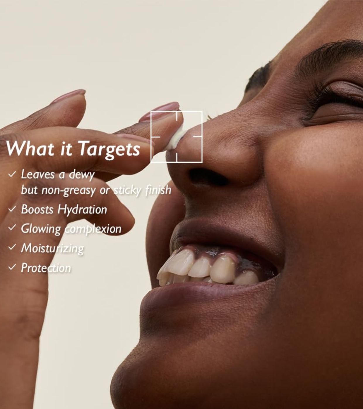 - Contiene extracto de arroz negro fermentado, ceramidas y ácido hialurónico que hidratan y fortalecen la barrera cutánea.