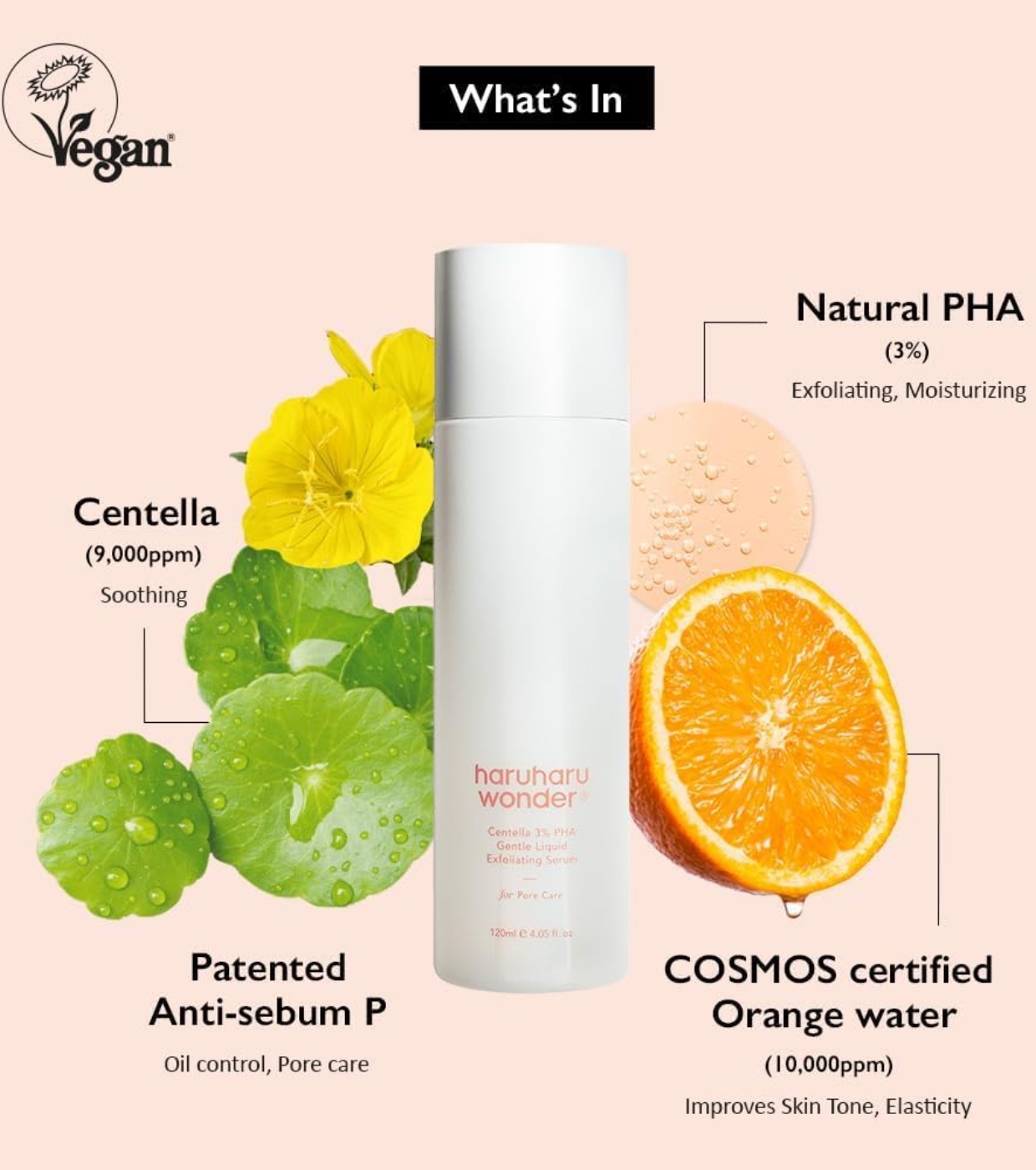 Este sérum exfoliante suave Centella 3% PHA de Haruharu Wonder combina un 3% de PHA (poli-hidroxiácidos), exfoliantes suaves de nueva generación, con Centella Asiática calmante y un complejo P antisebo patentado para reducir visiblemente los poros, controlar el exceso de grasa y afinar la textura de la piel sin causar irritación.