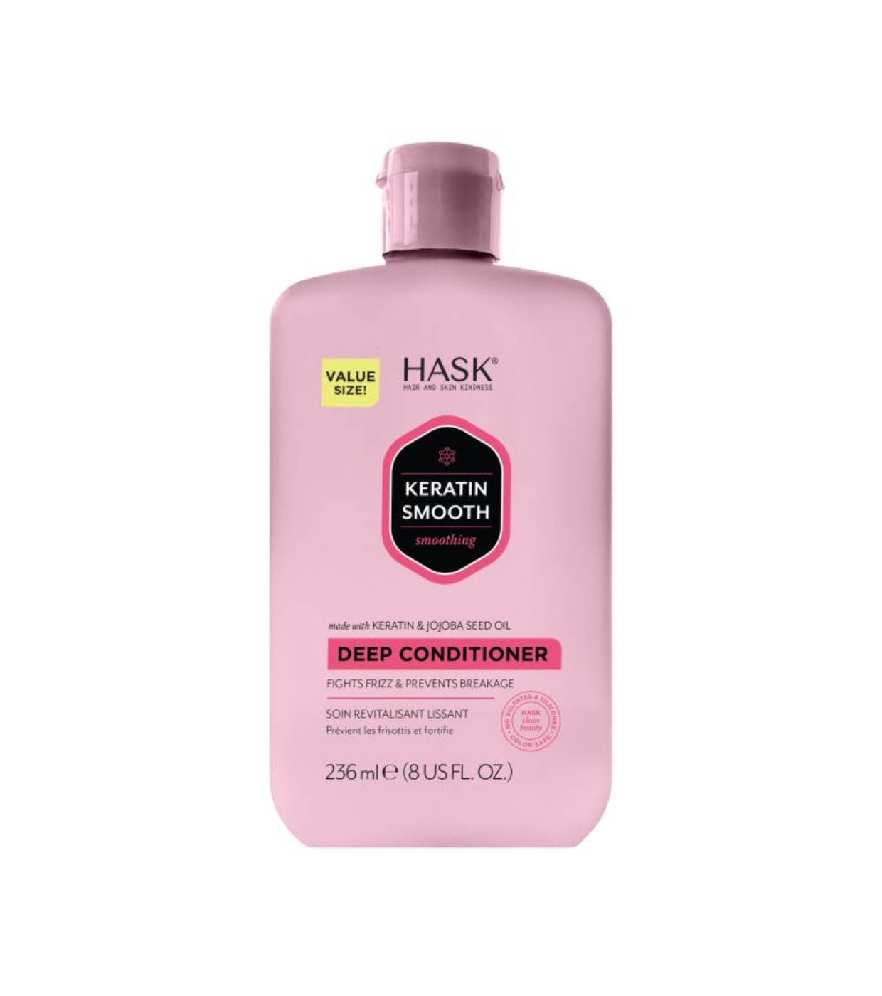 Disfruta de un cabello más suave, disciplinado y sin frizz con el acondicionador reparador Keratin + Jojoba Seed Oil de Hask ultra fortalecedor con proteÃna de queratina, formulado especialmente para cabello seco, rebelde o dañado.