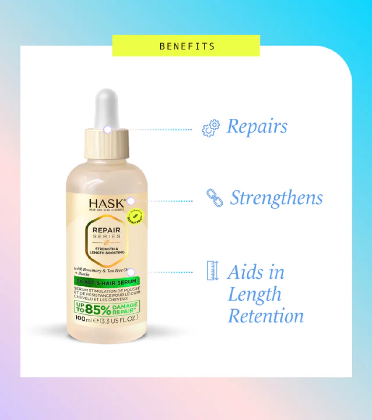 Impulsa el crecimiento saludable de tu cabello con el serum capilar Repair Series Strength & Length Boosting de HASK.
