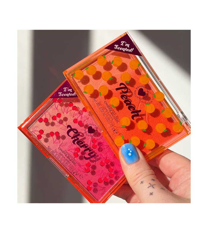 Este colorete en degradado pasa un suave tono melocotón a uno jugoso y vivo, con un aroma a melocotón.