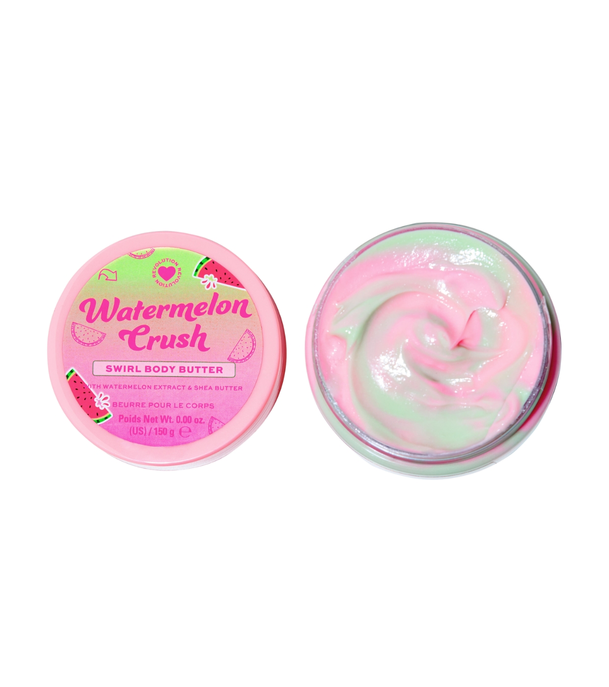La crema corporal Watermelon Crush Swirl de I Heart Revolution es una manteca corporal ultra nutritiva que deja la piel suave, hidratada y con un delicioso aroma afrutado.