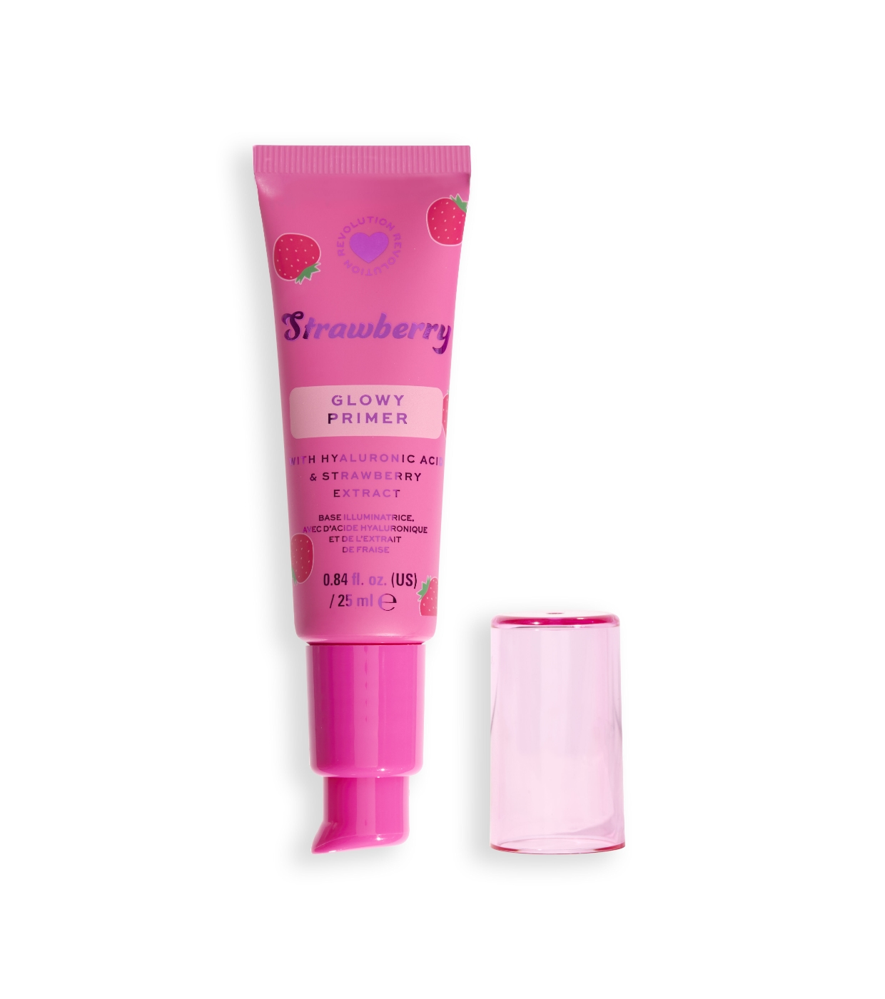 Logra una luminosidad natural y saludable con la prebase Strawberry Glow Primer de I Heart Revolution, una fórmula ligera enriquecida con ácido hialurónico y extracto de fresa, ideal para hidratar y realzar la piel con un brillo sutil y jugoso.