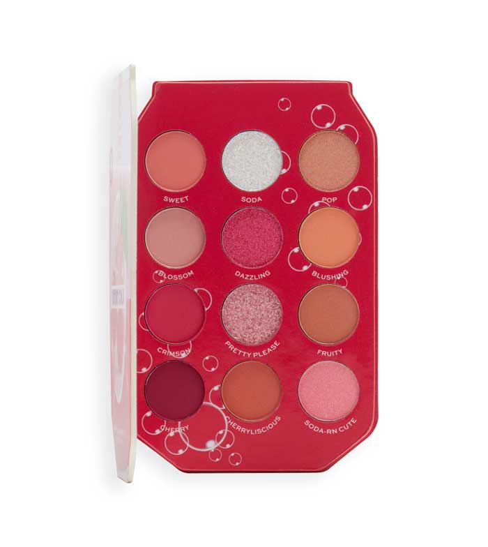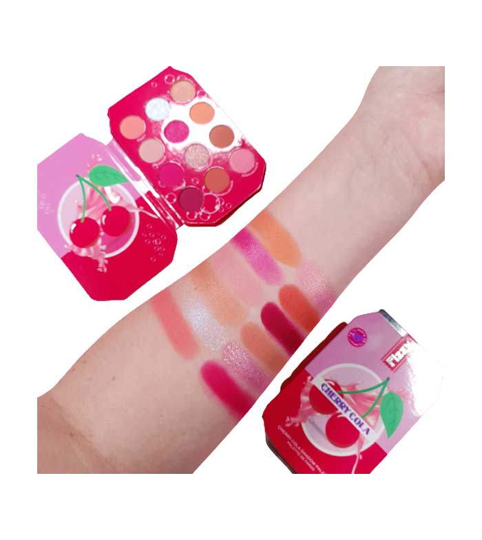 Añade un toque colorido a tu look con la paleta de sombras Cherry Cola, una refrescante selección de 12 dulces tonos que van desde el morado afrutado, los brillos y los sabrosos rosas coral.