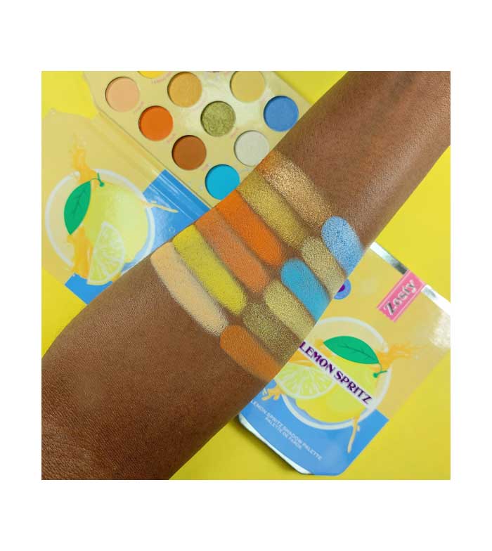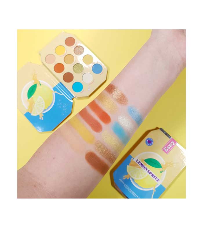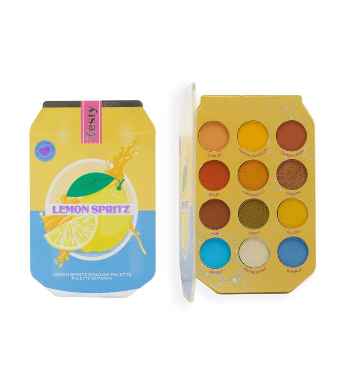 Añade un toque colorido a tu look con la paleta de sombras Lemon Spritz, una refrescante selección de 12 apetitosos tonos que van desde los intensos brillos cromados dúo hasta los versátiles tonos nude, todo ello combinado con toques de amarillo y azul.