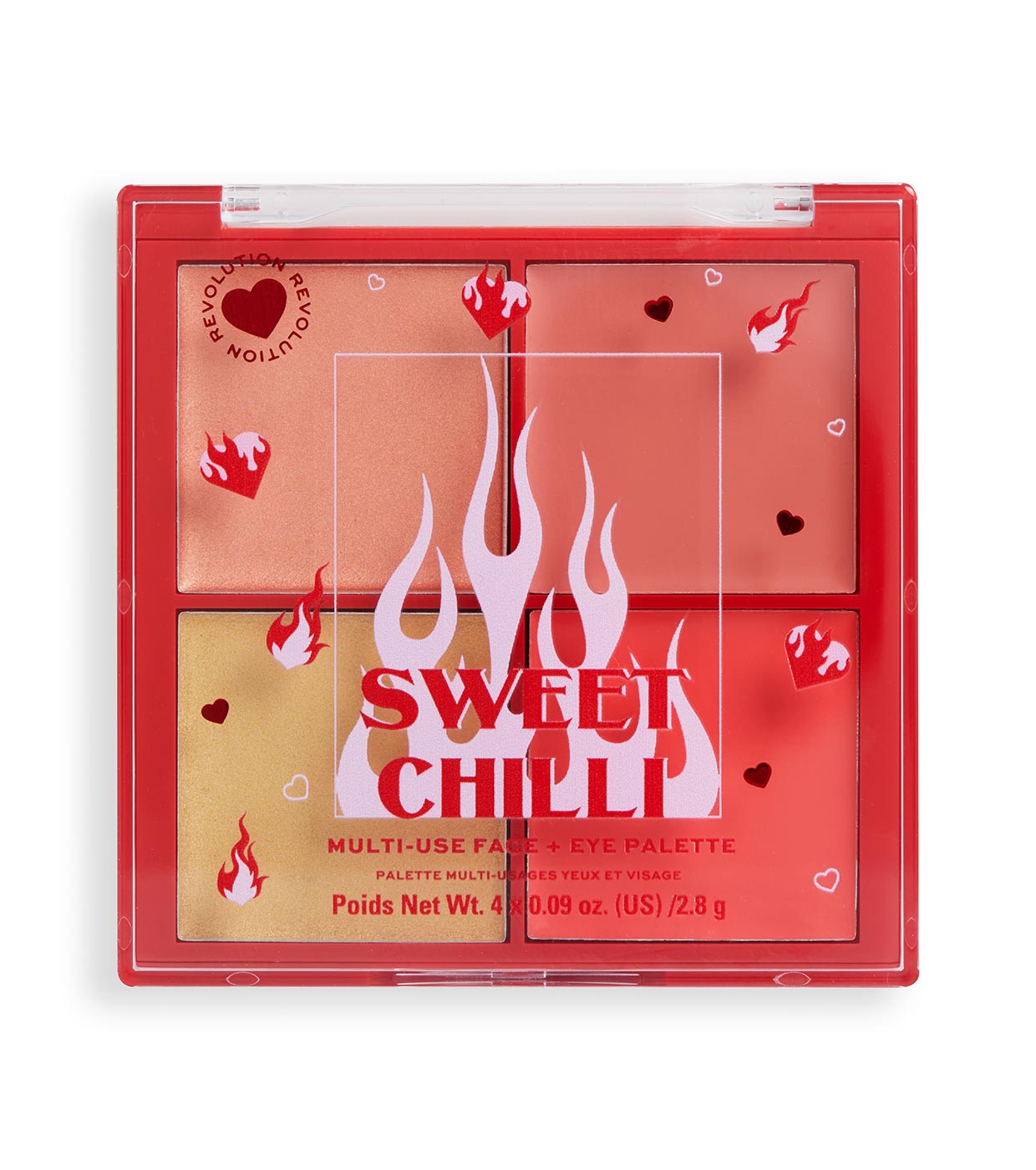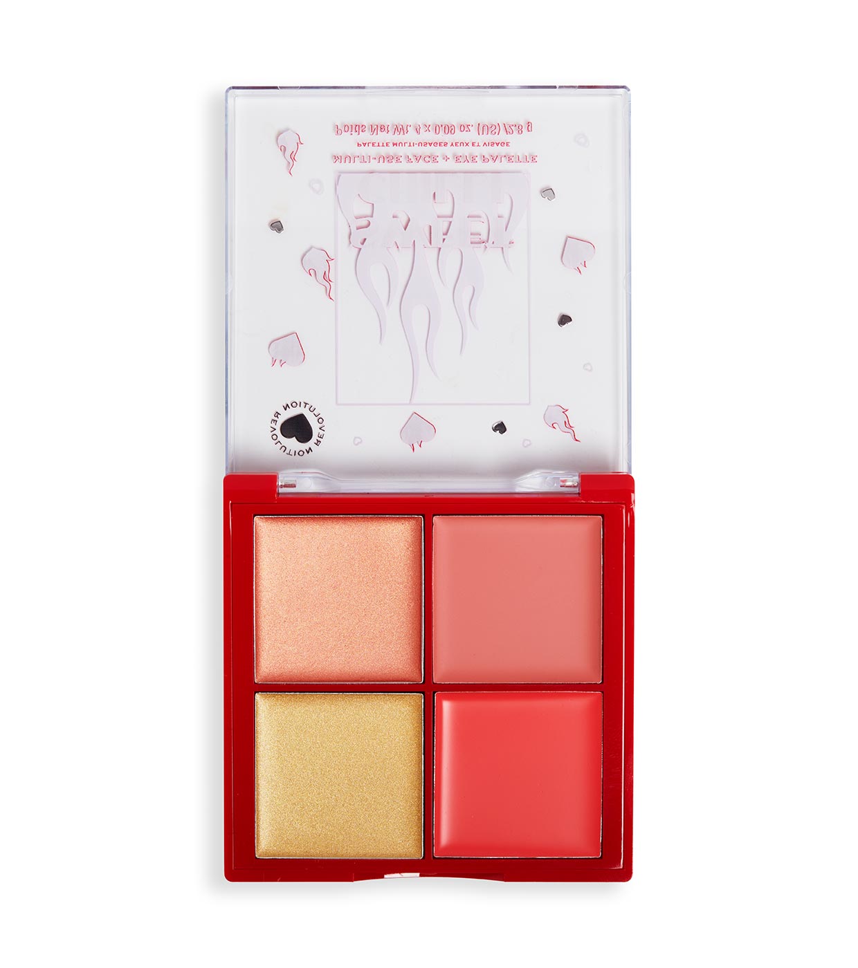 Saluda a nuestro lanzamiento más picante... Saca tu lado más glamuroso con los fieros colores de la paleta multiusos para rostro y ojos de I Heart Revolution.
