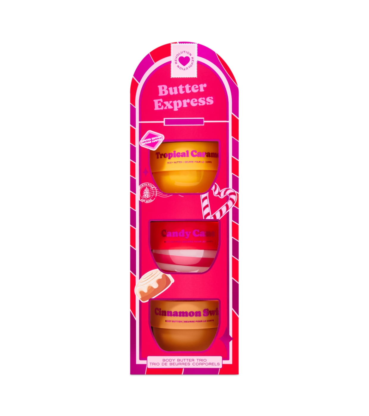 Mima tu piel con el I Heart Revolution Butter Express Body Butter Set, un trÃo irresistible de mantecas corporales en formato mini (68g cada una), diseñadas para hidratar en profundidad y envolver tu piel en aromas dulces y festivos.