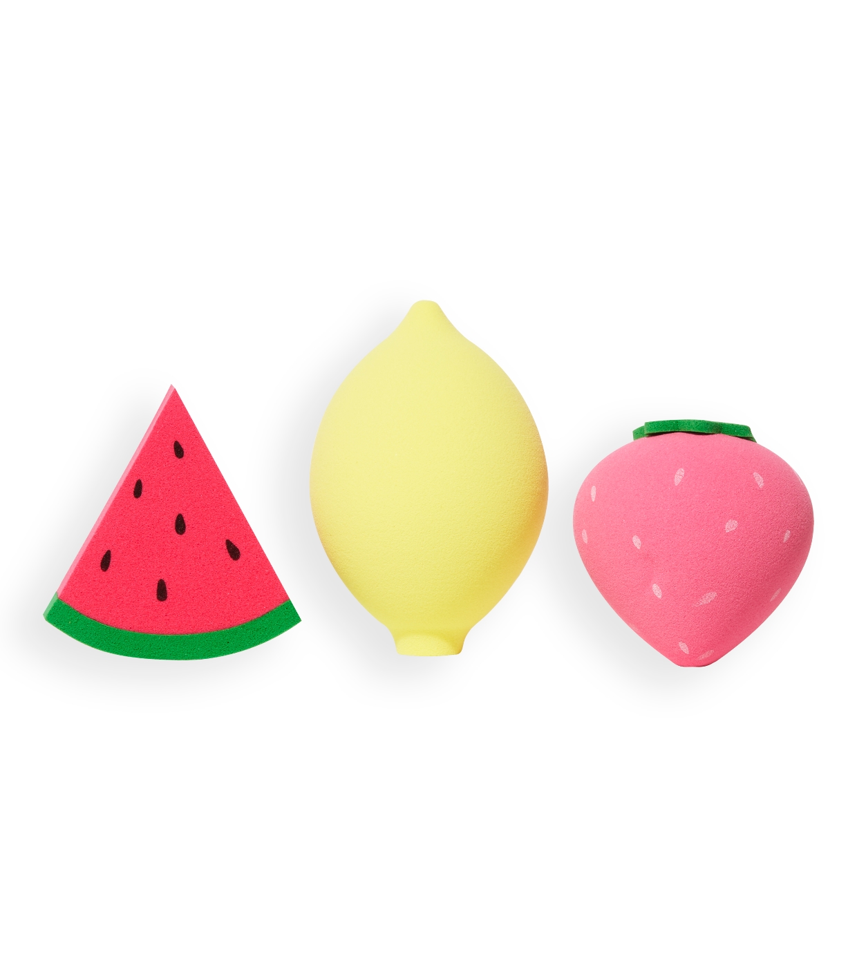 Consigue una base perfecta y difumina tu maquillaje sin esfuerzo con el trío de esponjas de maquillaje Fruit Punch de Revolution.