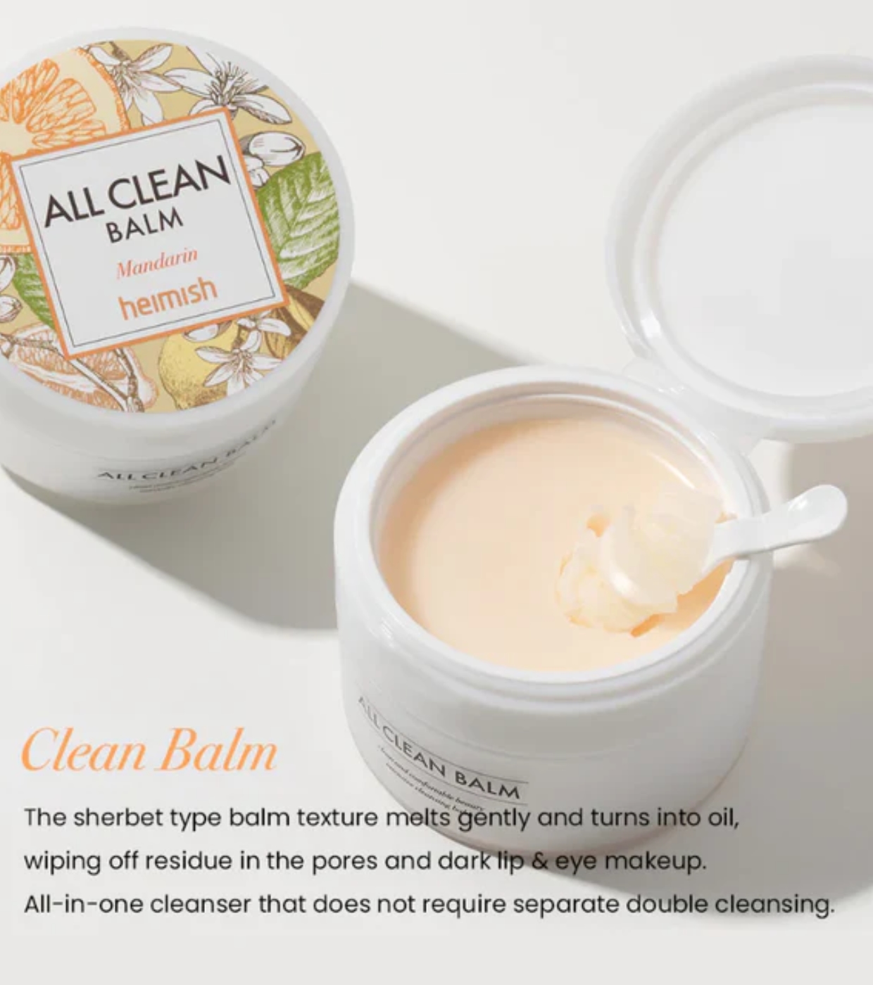 Este bálsamo limpiador All Clean balm de Heimish es vegano y está formulado para eliminar eficazmente el maquillaje resistente al agua, las impurezas y los residuos acumulados durante el día.