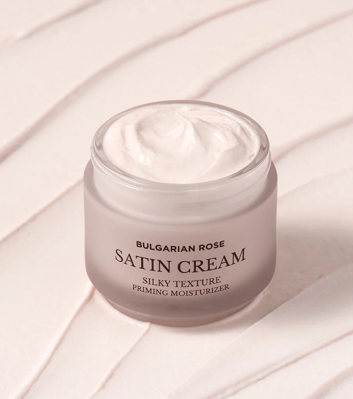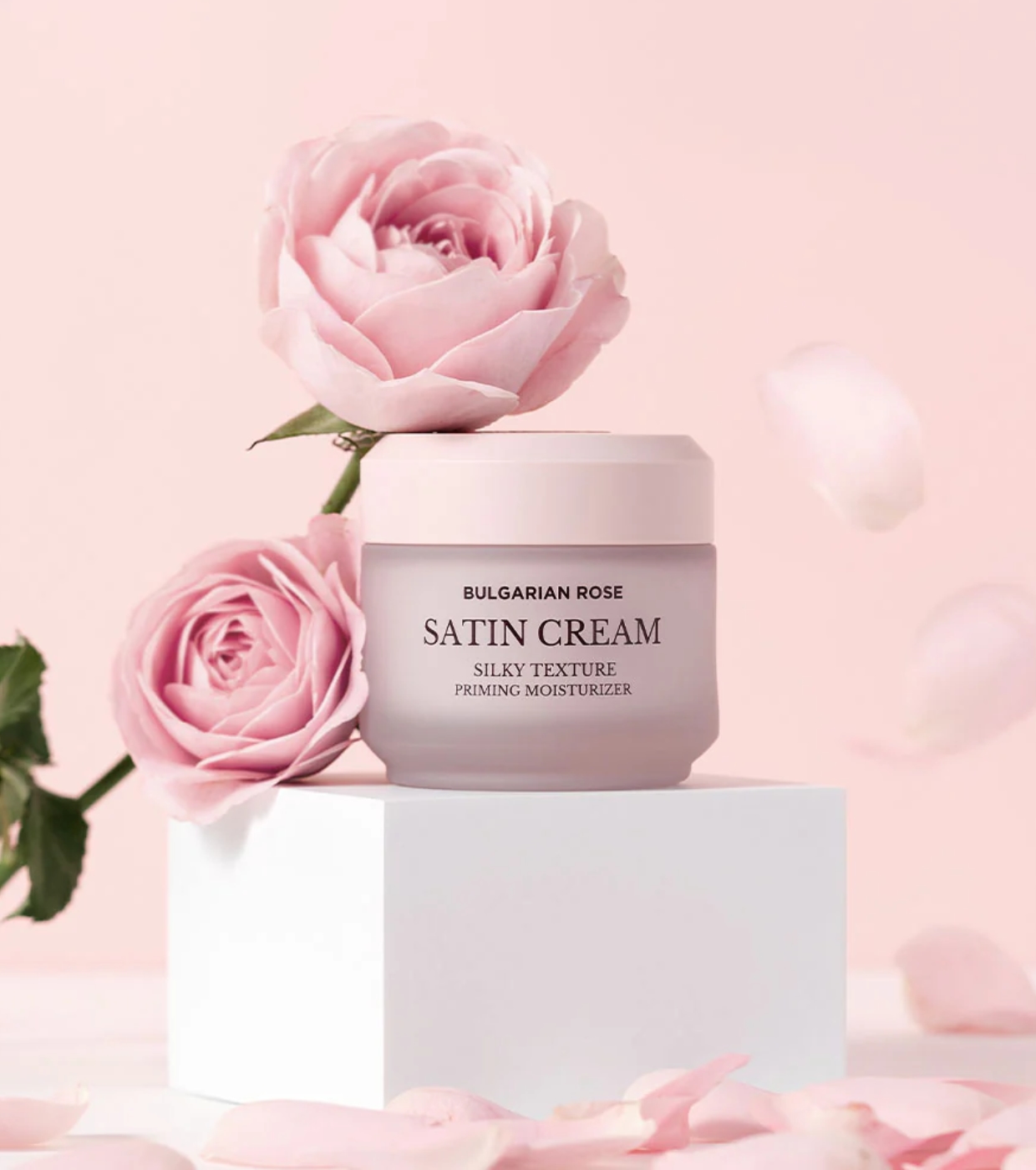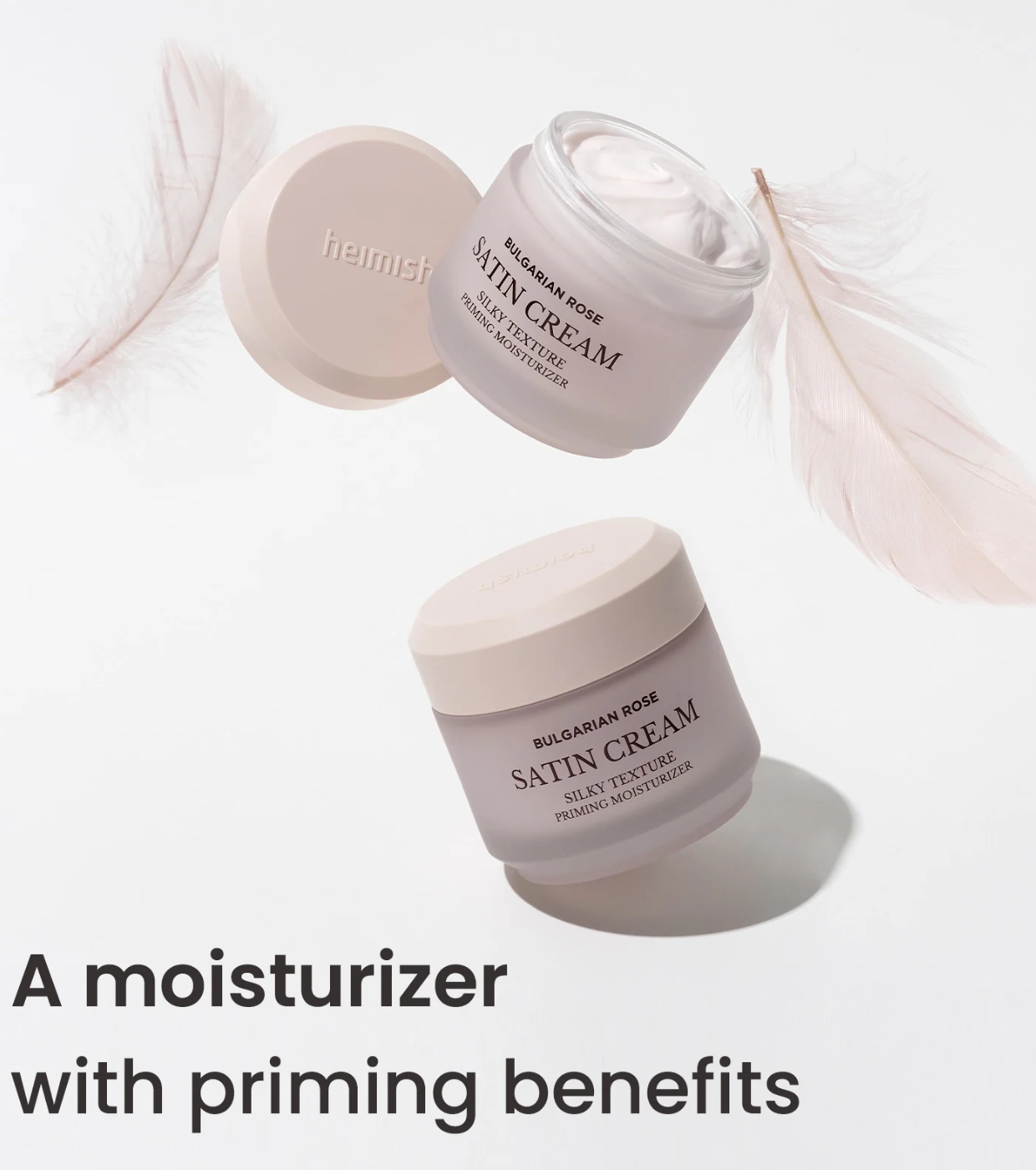 La crema hidratante y reparadora Satin Cream de Heimish Bulgarian Rose con agua de rosa de Damasco es un tratamiento nutritivo y exfoliante suave que actúa como preparador y potenciador de hidratación para piel seca, apagada o escamosa.
