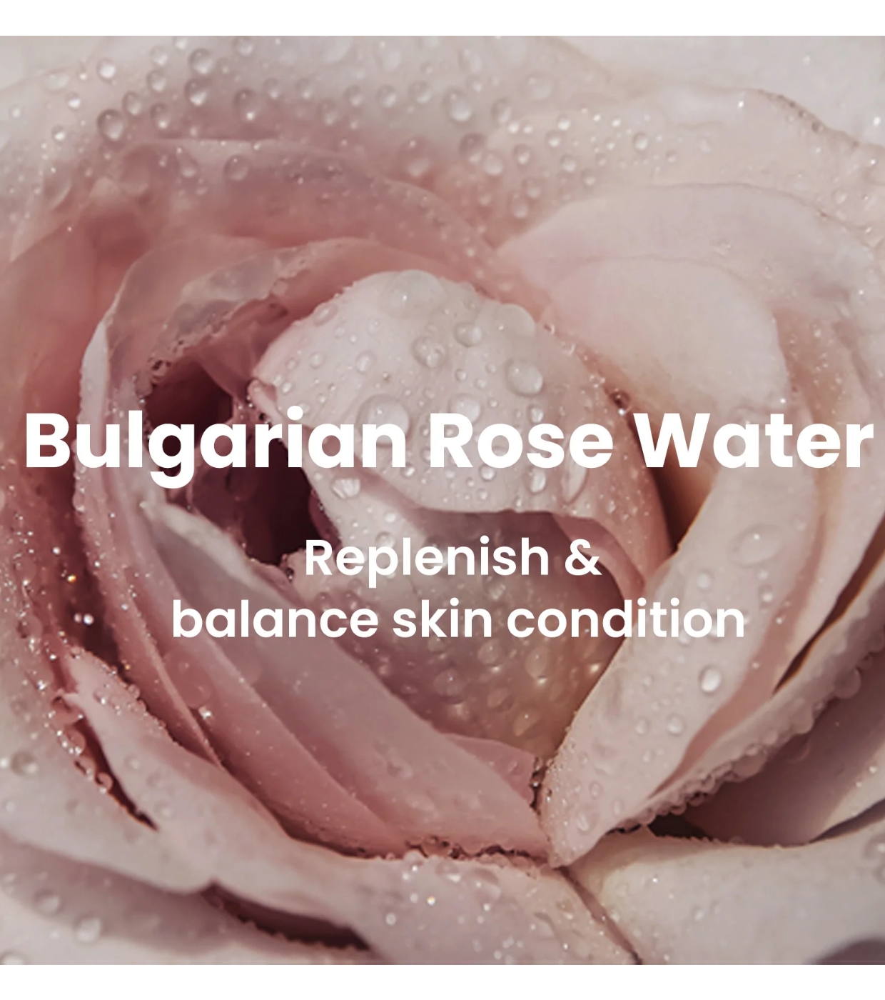 - Hidratación profunda y duradera con un 63% de agua de rosa de Damasco.