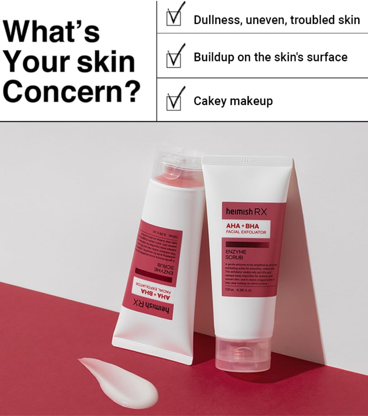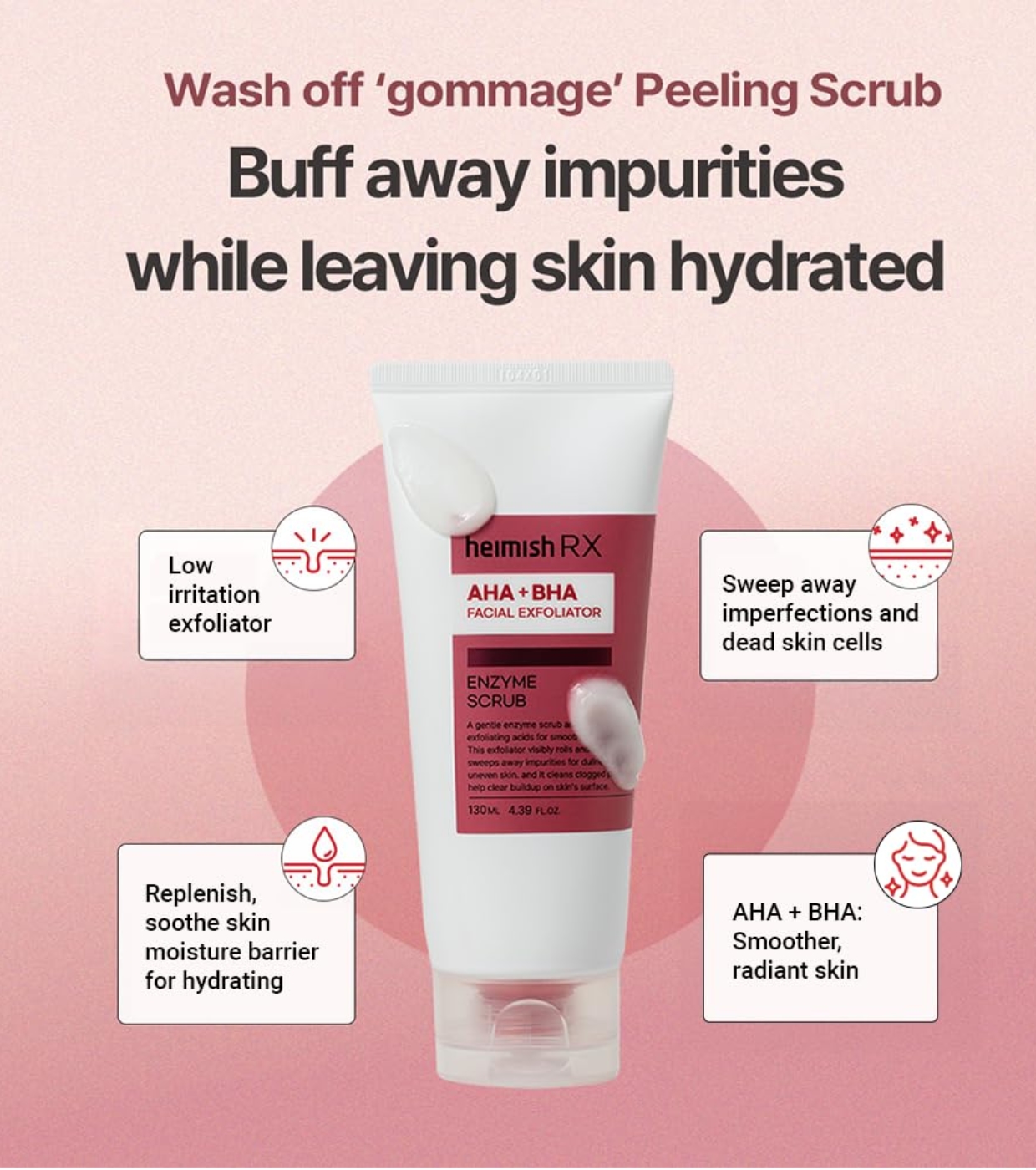 Logra una piel más suave, fresca y limpia con el Heimish RX AHA BHA Enzyme Scrub.