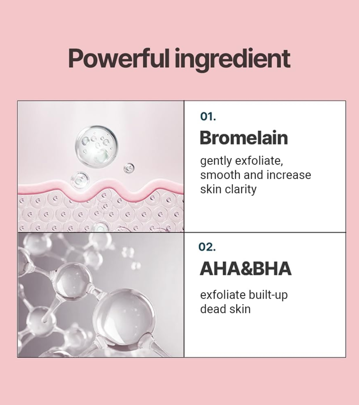 - Exfoliación suave y eficaz con AHA, BHA y enzimas naturales.