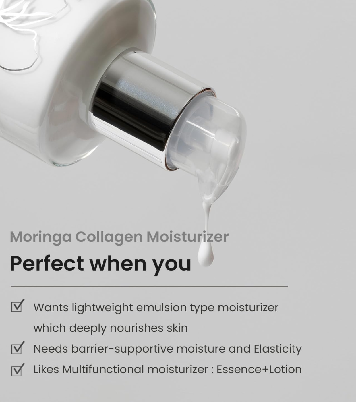 Este humectante liviano tiene una formulación tipo emulsión que se aplica suavemente sobre la piel y la piel la absorbe rápidamente.