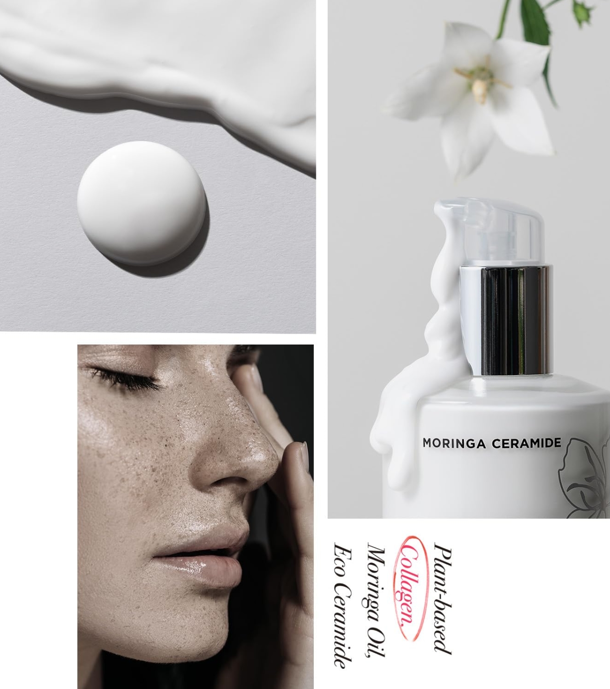 Una crema hidratante con colágeno de origen vegetal y ceramida de moringa ecológica crea una apariencia brillante y saludable, mientras nutre y reafirma profundamente la piel.