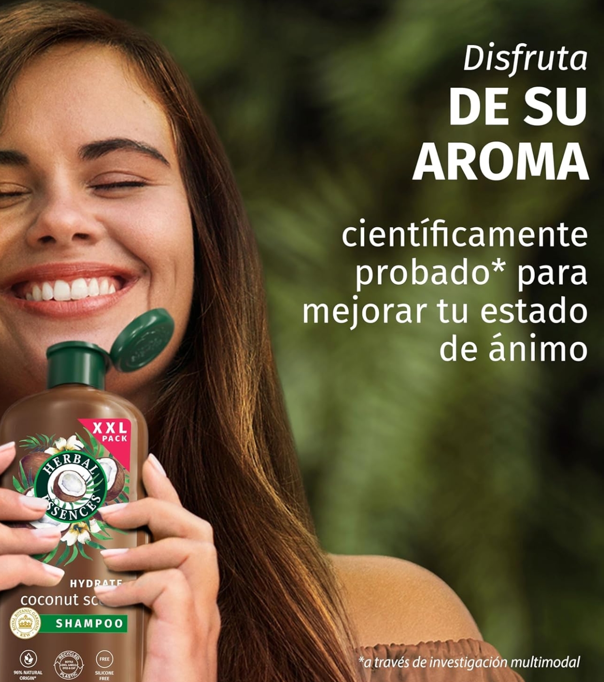 Sumérgete en un auténtico paraíso tropical con el Champú Hidratante con Coco de Herbal Essences, un tratamiento nutritivo pensado para hidratar intensamente el pelo muy seco y devolverle suavidad, equilibrio y brillo natural.