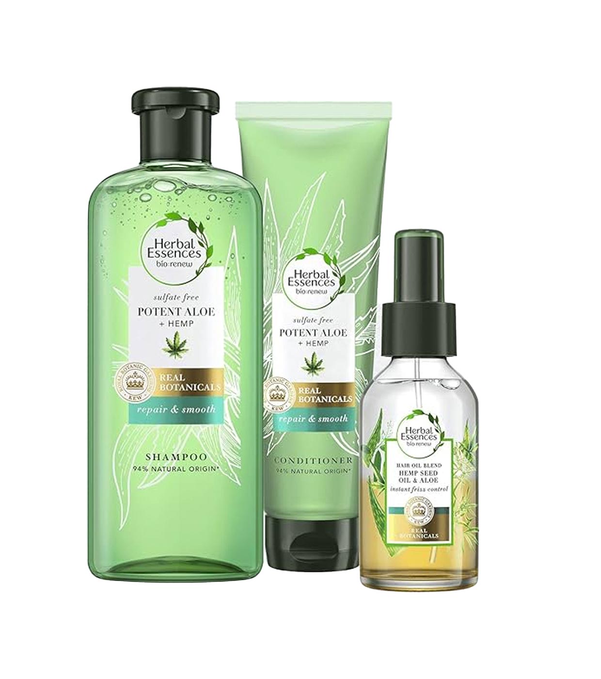 Pack de Champú + Acondicionador + Spray antiencrespamiento Bio Renew de Herbal Essences.