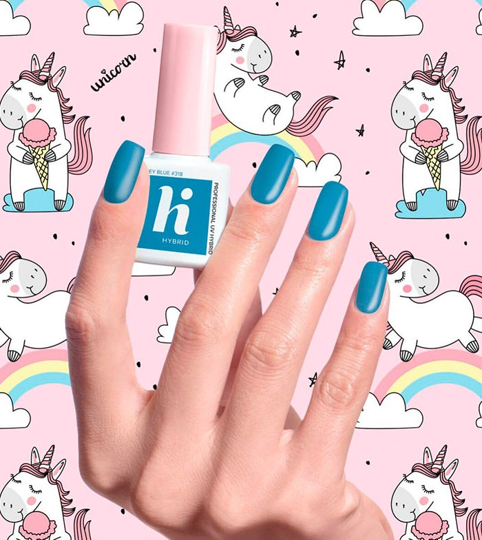 El esmalte Grey Blue de la colección Hi Unicorn deja un precioso y atrevido tono azul.