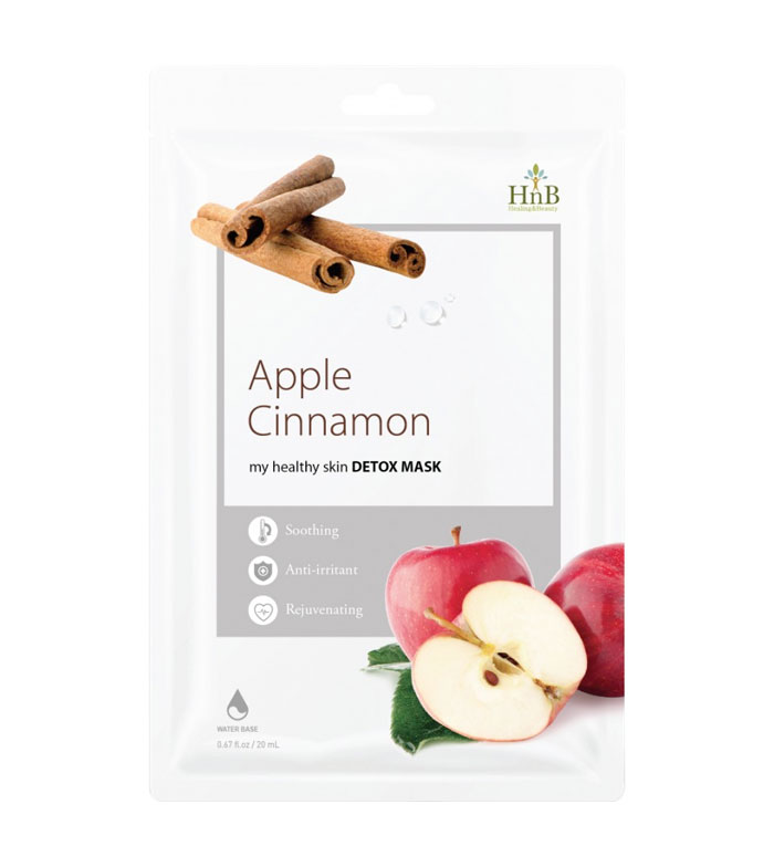 Mascarilla facial detox, rica en nutrientes, contiene propiedades antibacterianas y antioxidantes de la manzana y canela que elimina las impurezas, previenen los granitos, ayuda a calmar y rejuvenecer para una piel saludable y suave.